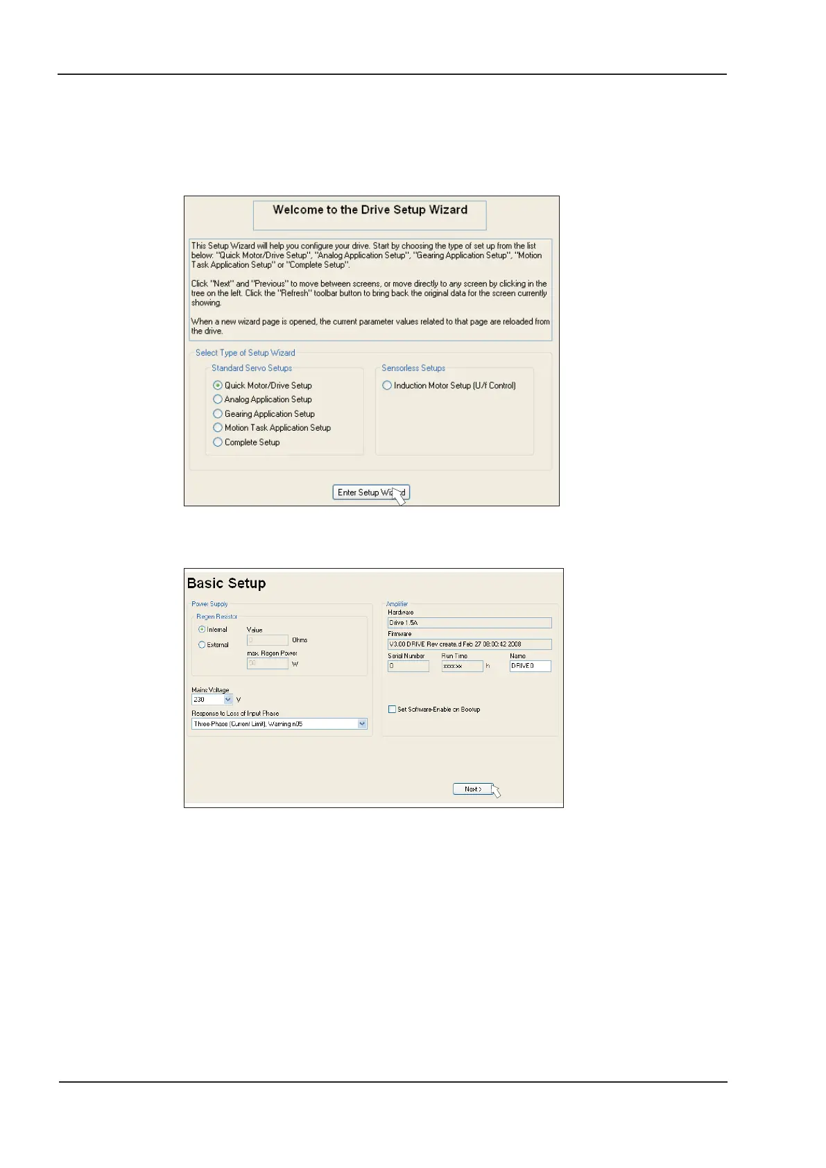 The Setup Wizard leads you through the necessary steps for configuring your servo