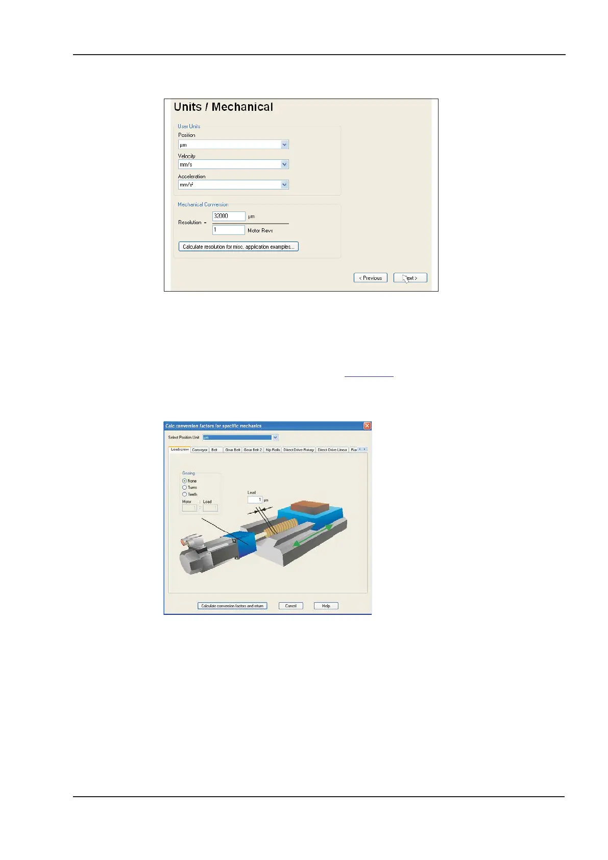 motion distance of the load is specified here. Gear ratio can be calculated here as well.