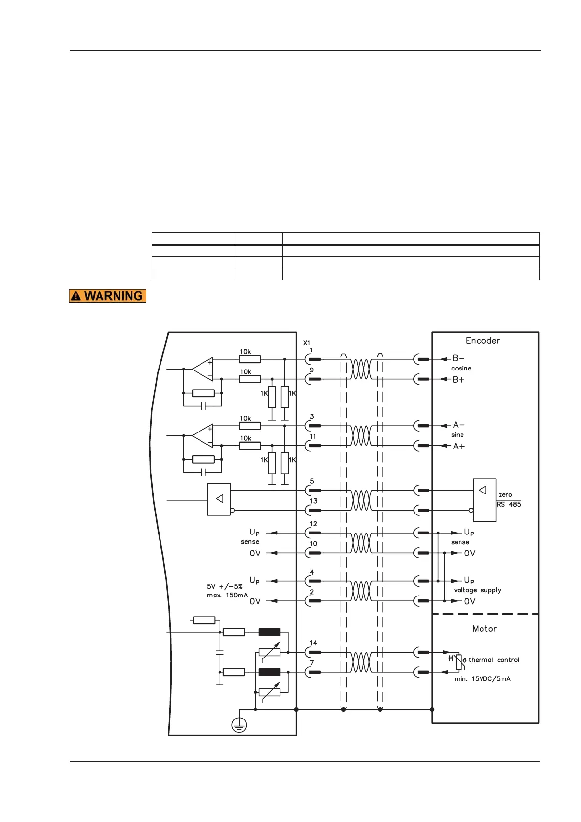 The thermal control in the motor is connected via the encoder cable to X1 and evaluated there.