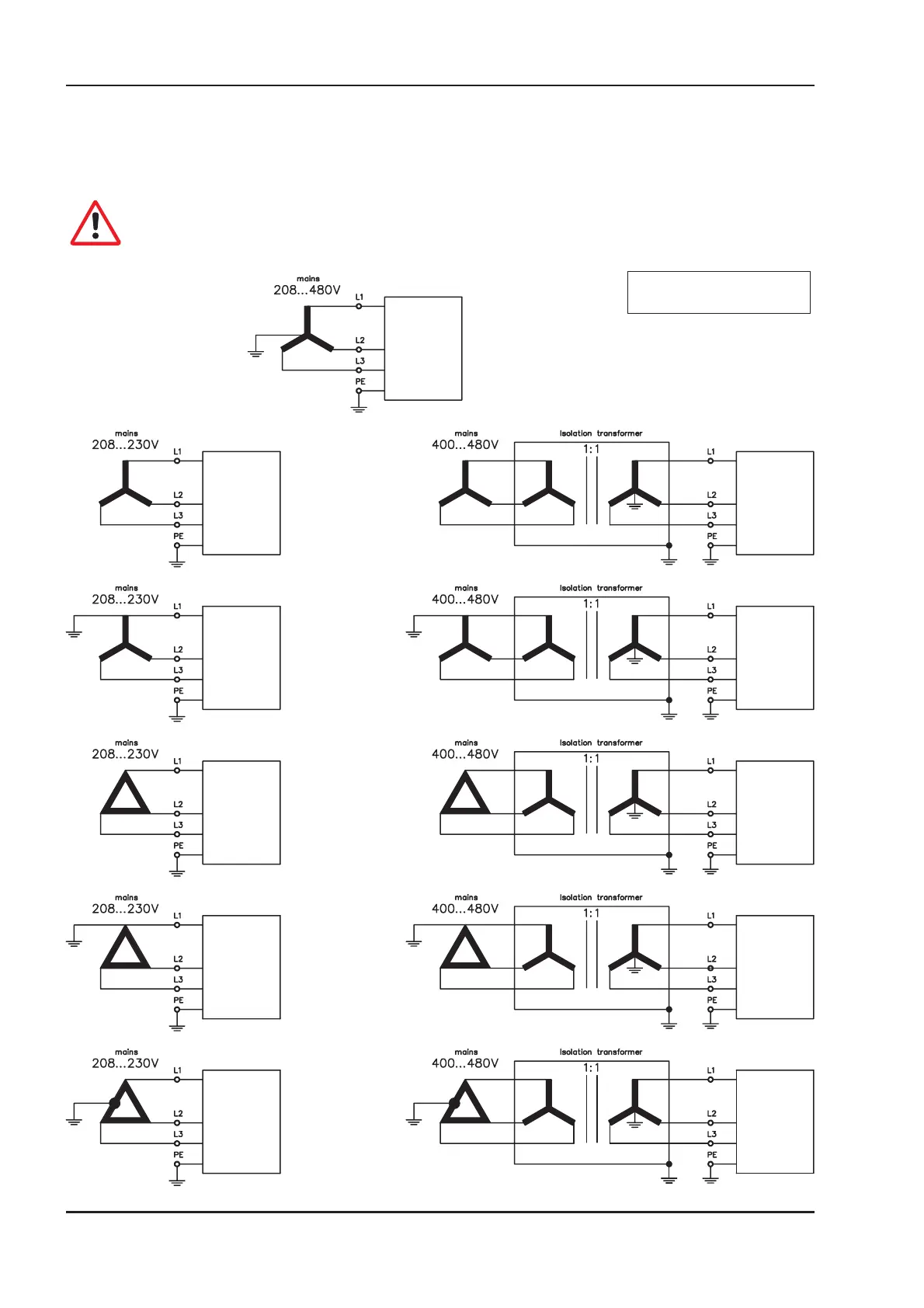 An isolating transformer is always required for 400...480V mains networks without