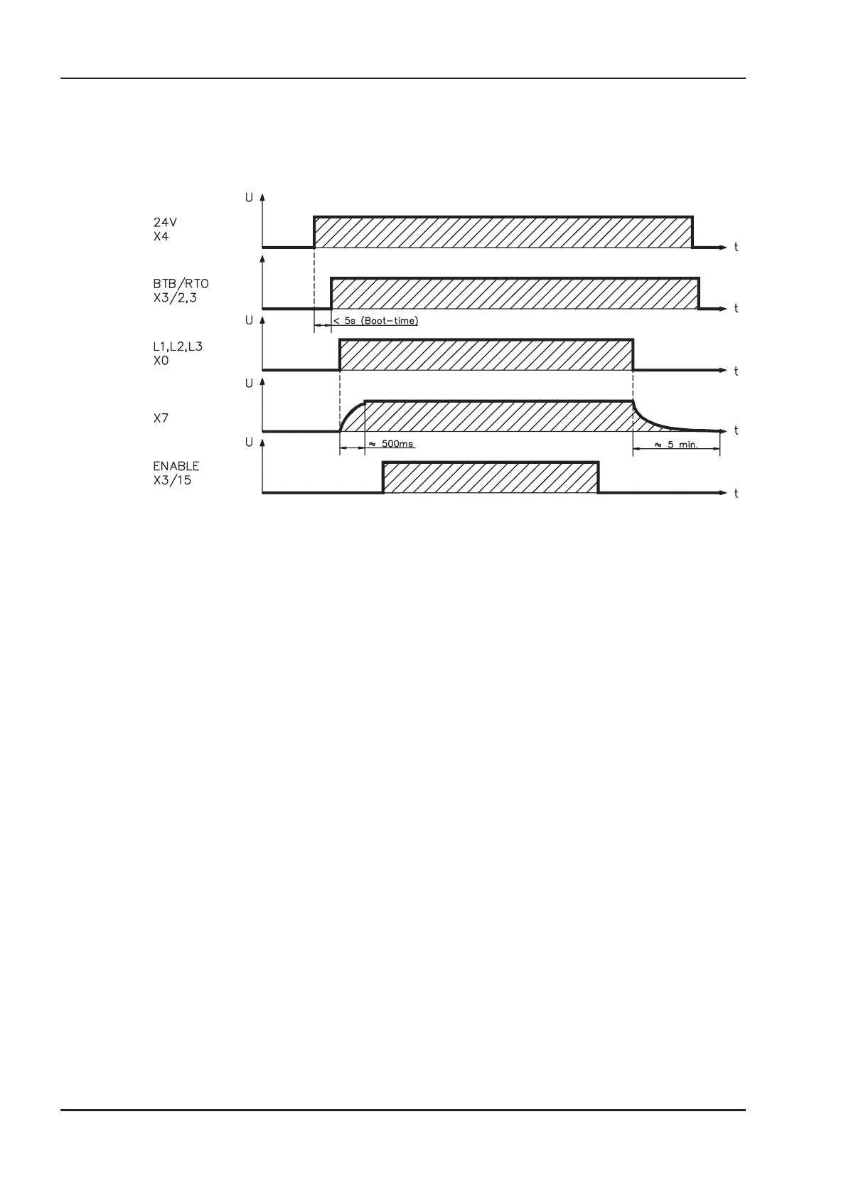 The diagram below illustrates the correct functional sequence for switching the servo amplifier on