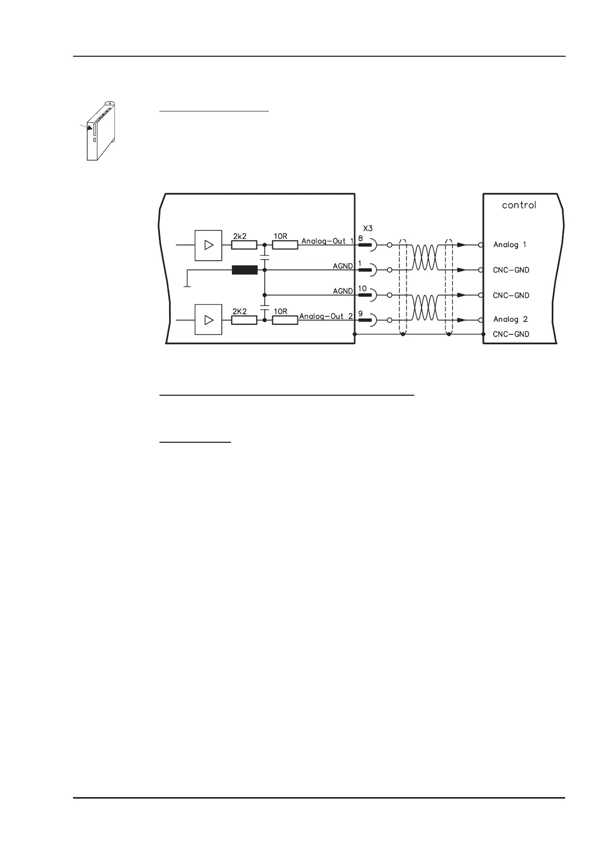 The terminals X3/8 (Analog-out 1) or X3/9 (Analog-out 2) can have the following analog signals