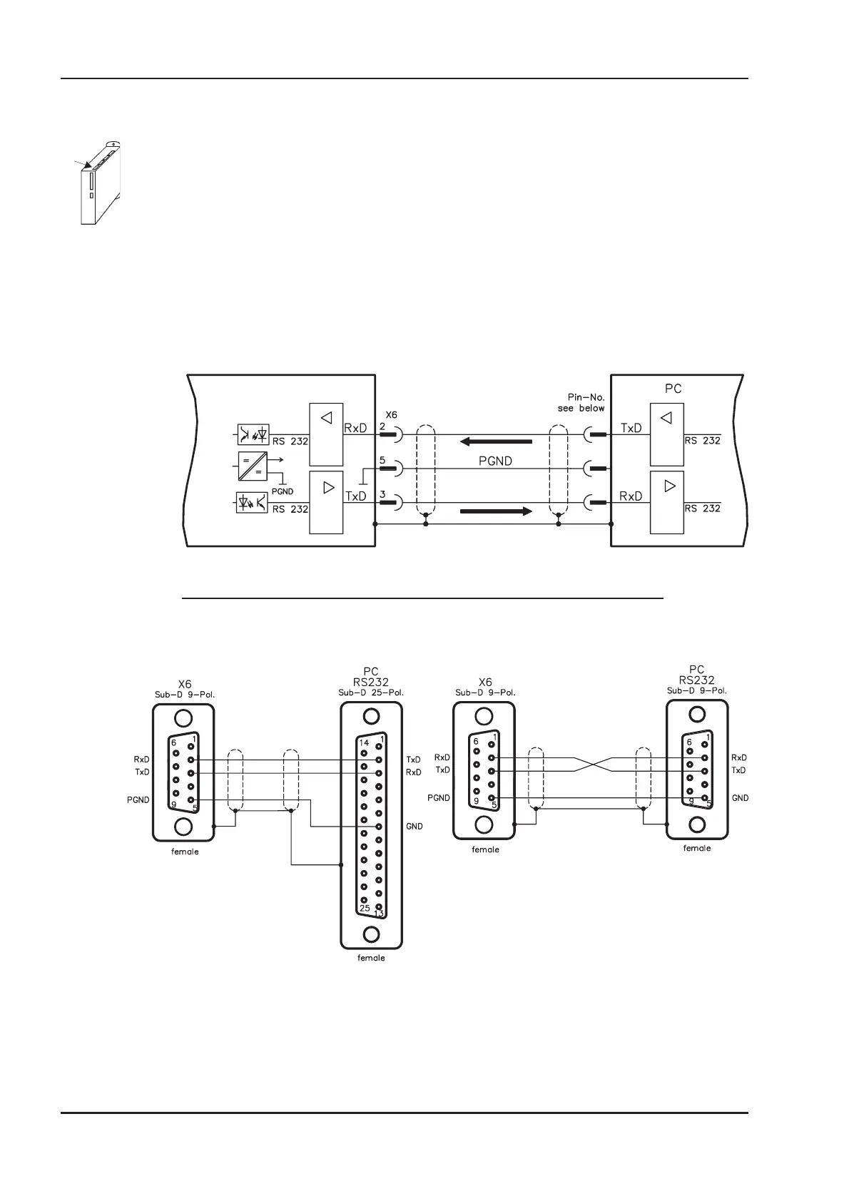 3.8 RS232 interface, PC connection (X6)