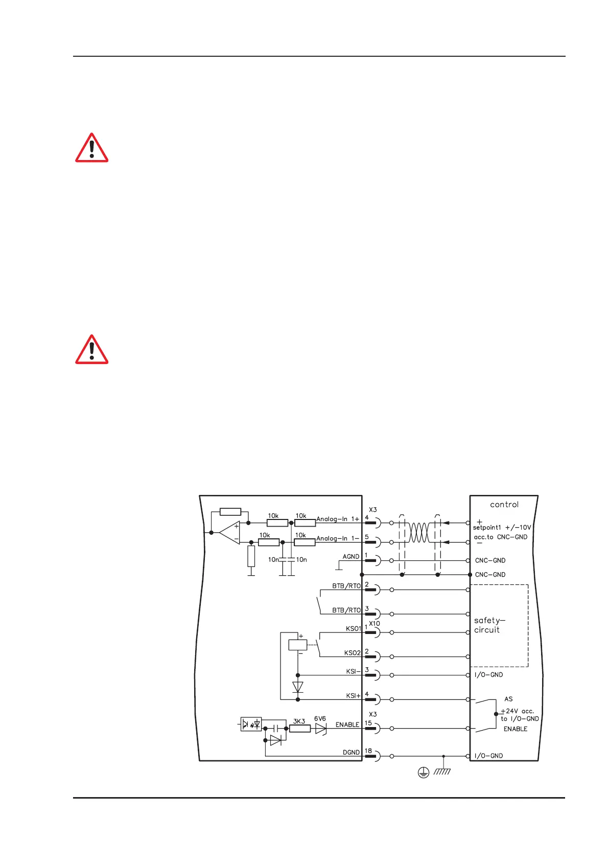 the control circuit. This is vital, so that a malfunction of the internal safety relay or a cable bre