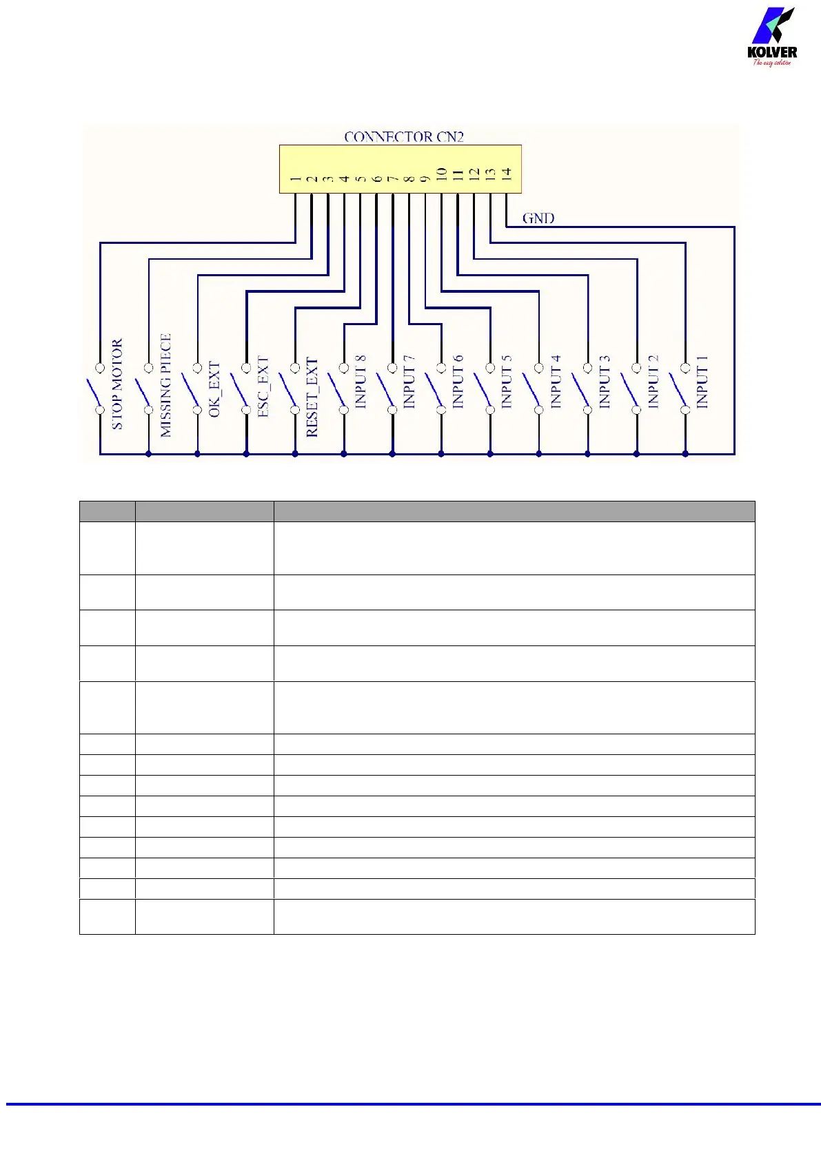 All of the following pins are input: make a contact with pin 14 to activate them.