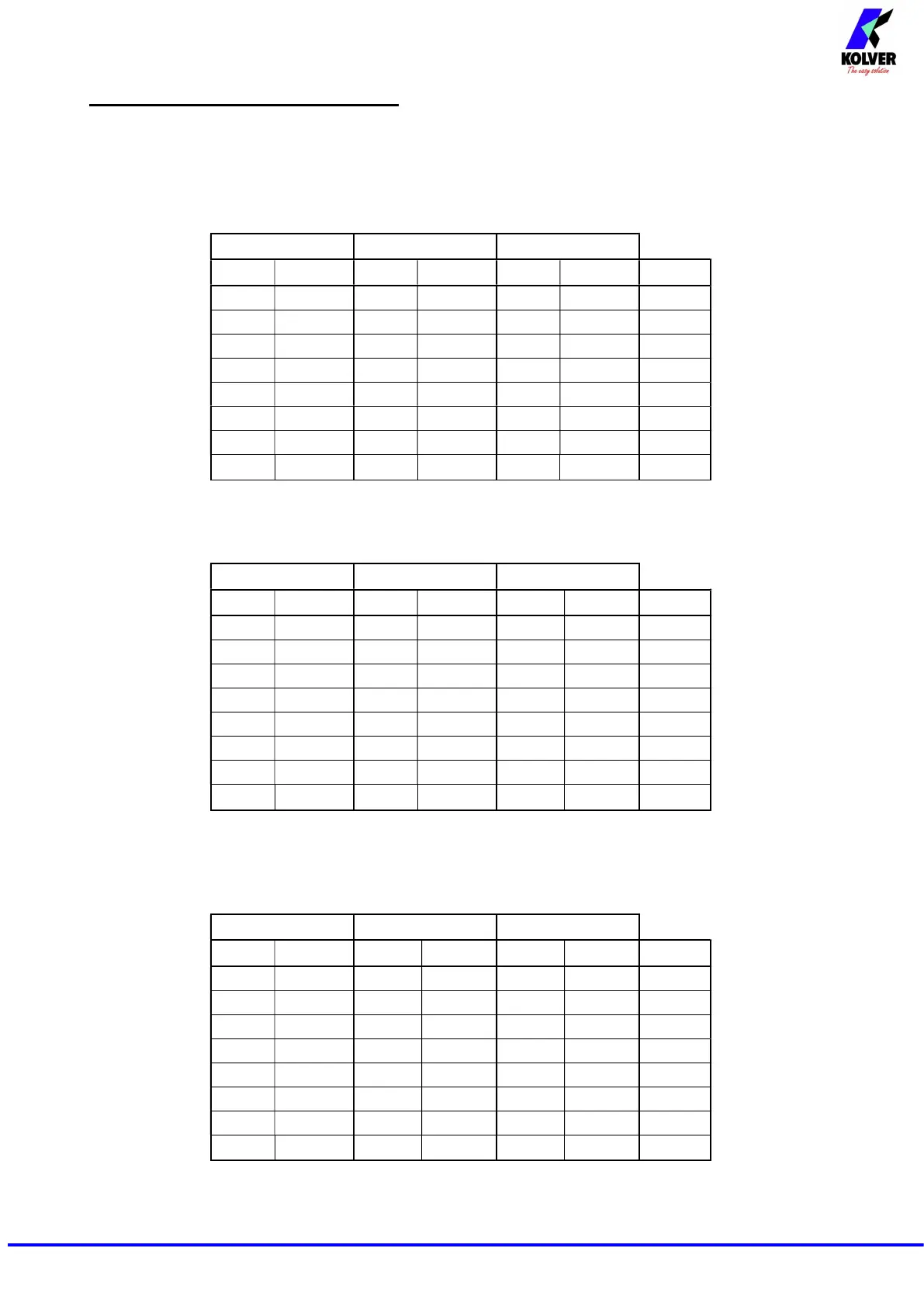 The following tables valid for the Unit operating mode show the selectable torques for each speed.
