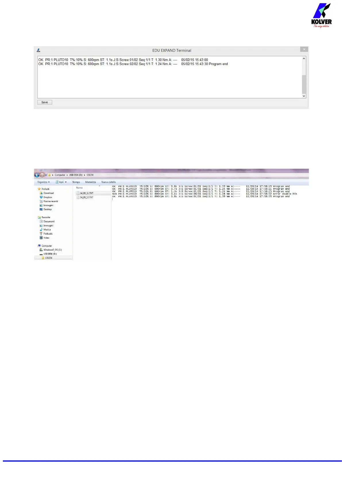 - If you connect the USB drive to the control unit, the unit creates a folder where the report of the