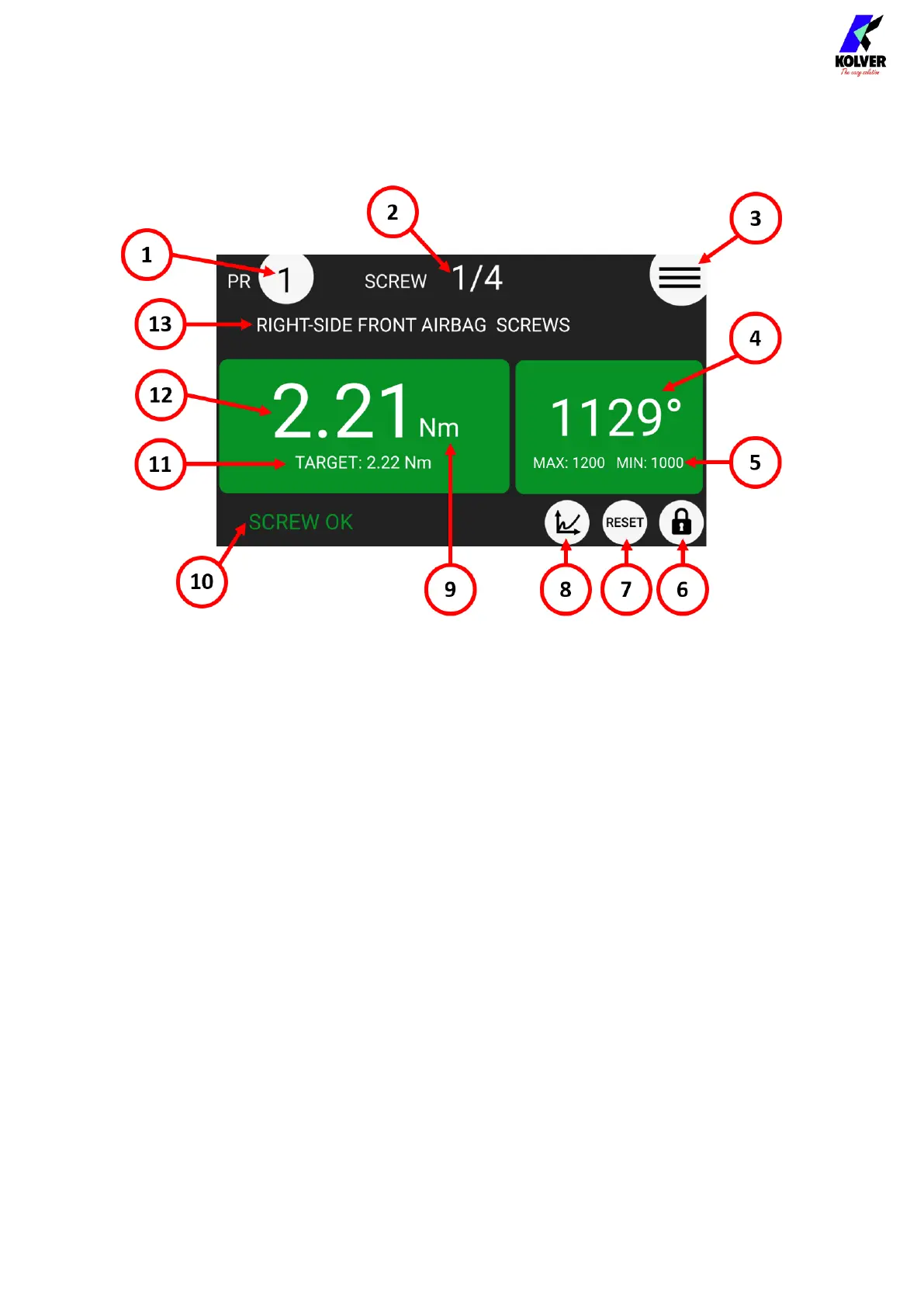 Counter: screws successfully completed / number of screws in current program