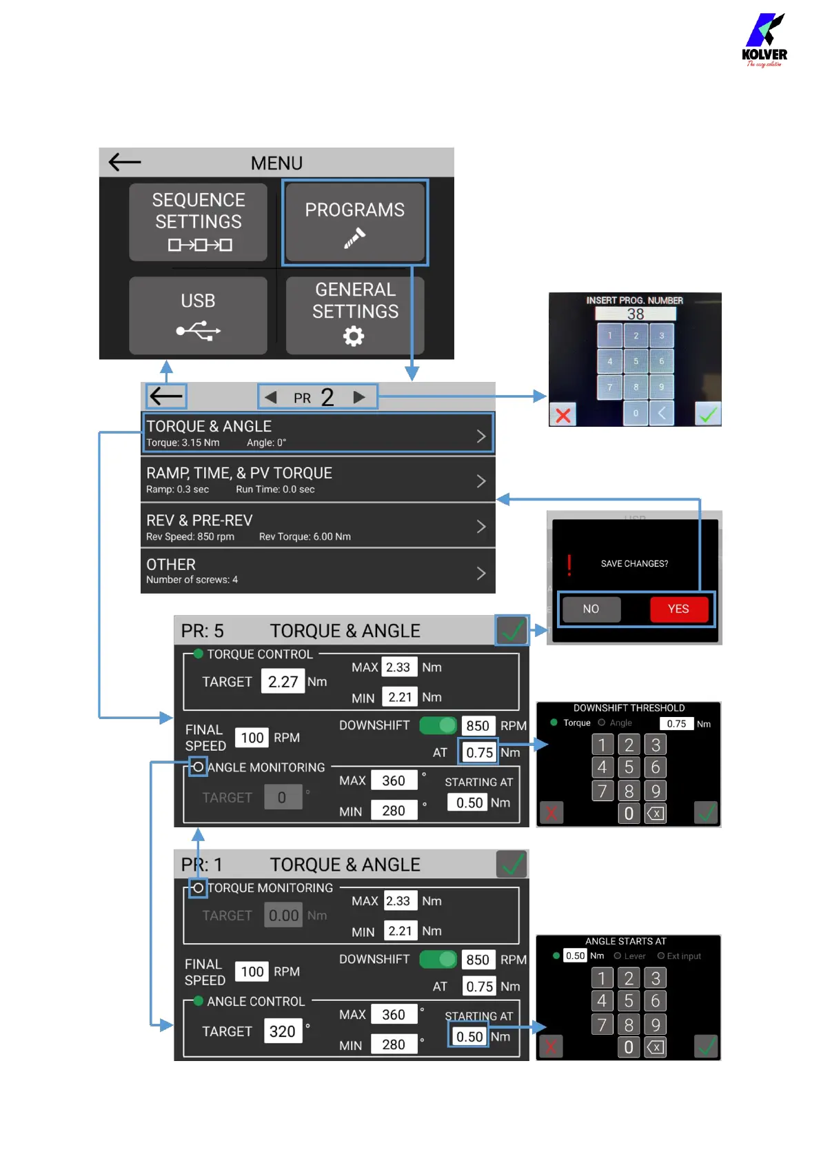 Kolver K-DUCER KDU-NT - PROGRAMS Menu Tree
