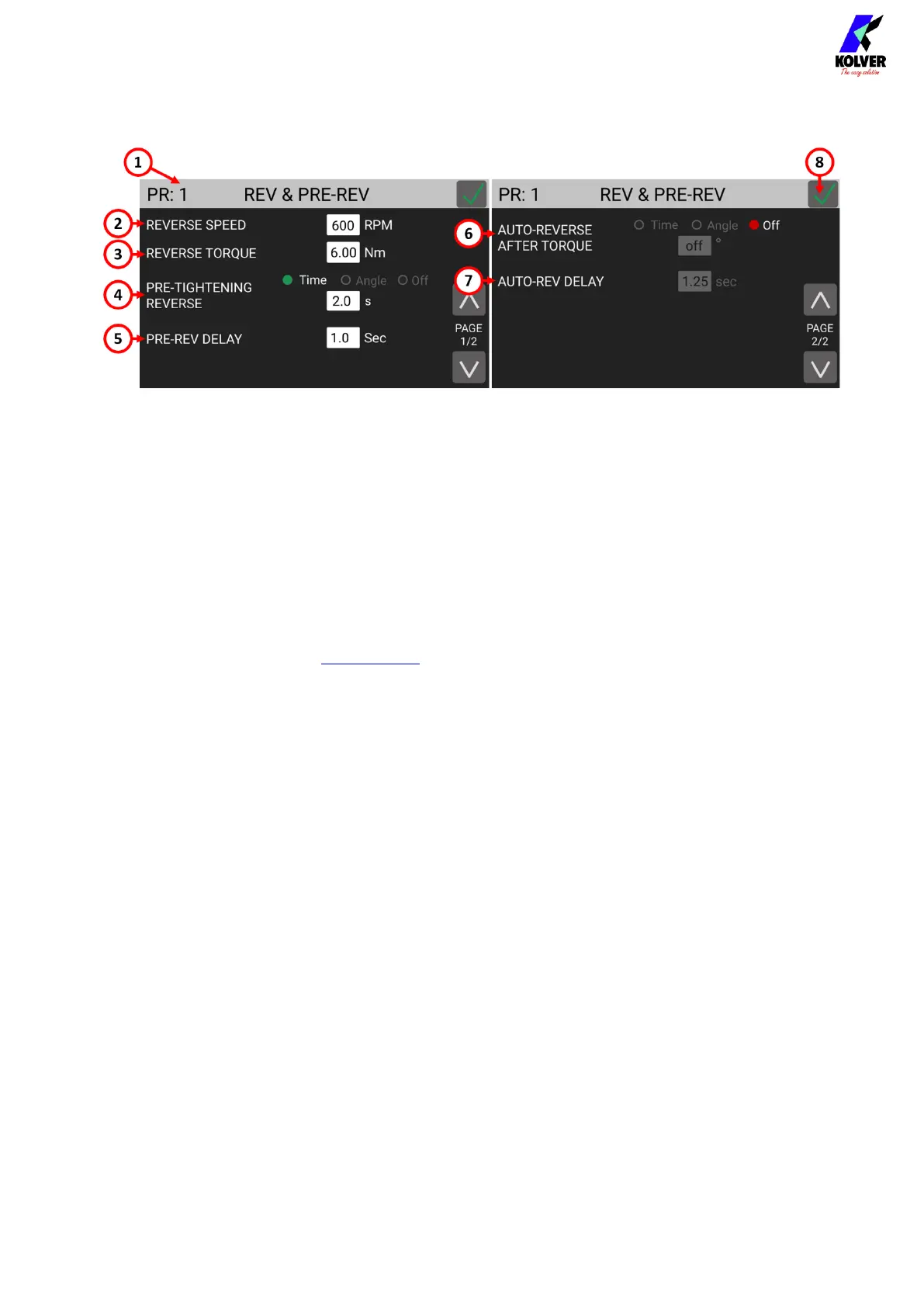 The speed and torque utilized in the PRE-TIGHTENING REVERSE phase are set in the