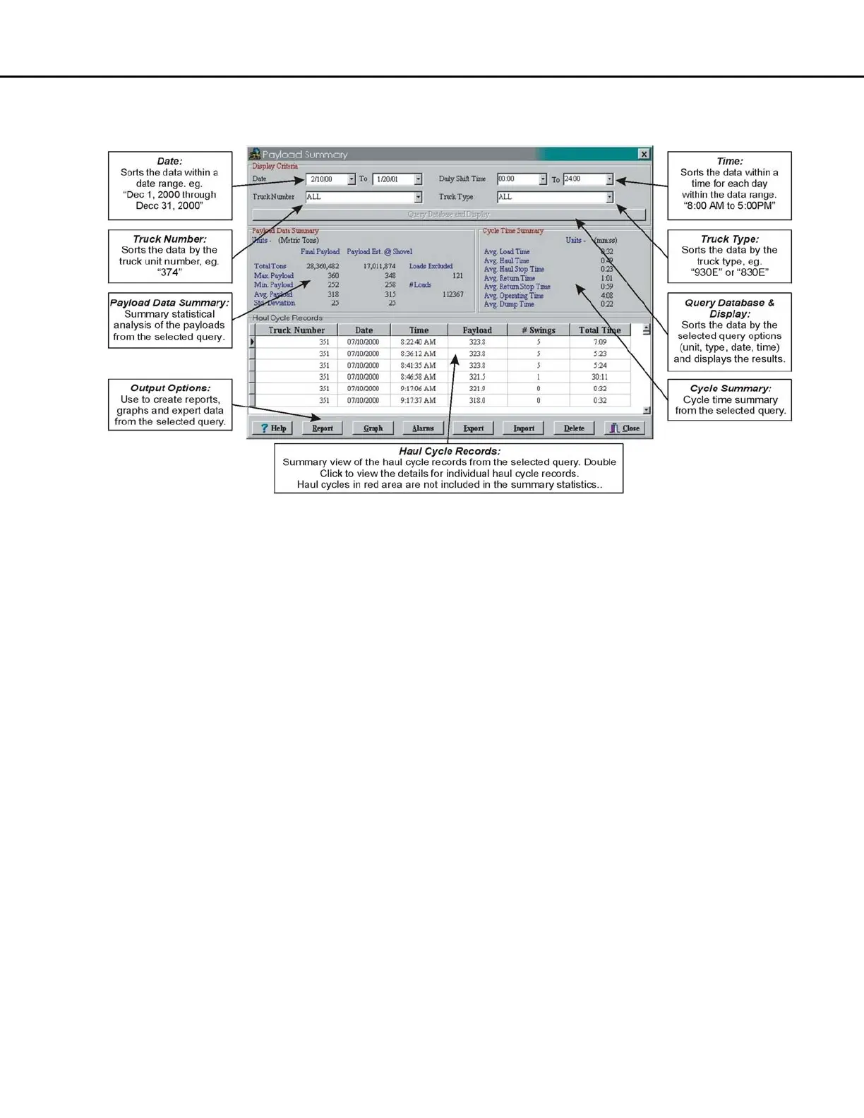 the user selects a truck # and date range, the query