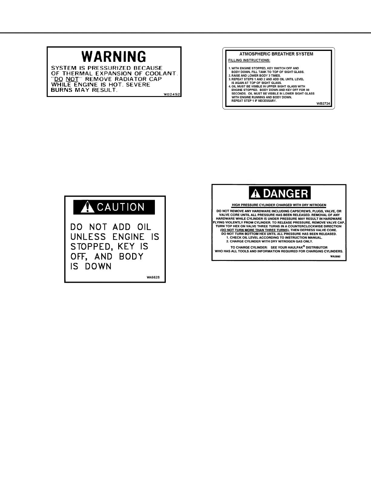 and steering accumulator. These plates warn that the