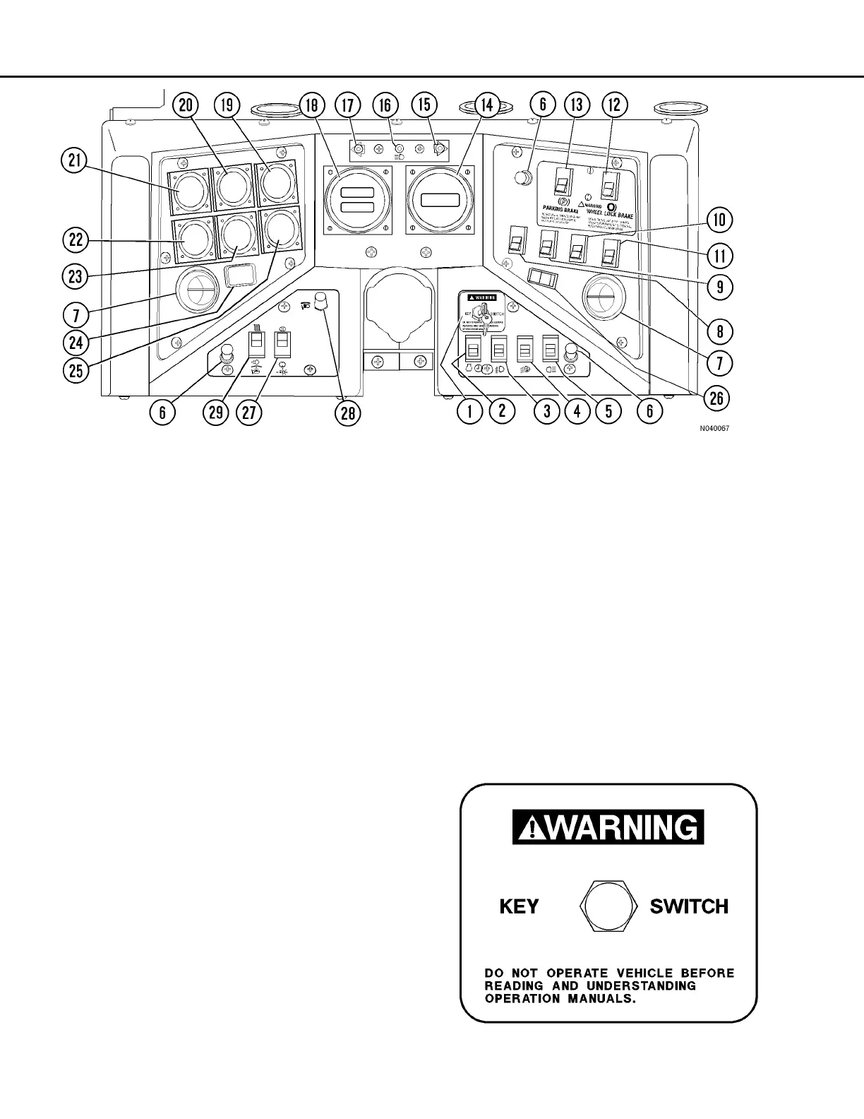 Key switch (1, Figure 32-11) is a three-position (OFF,