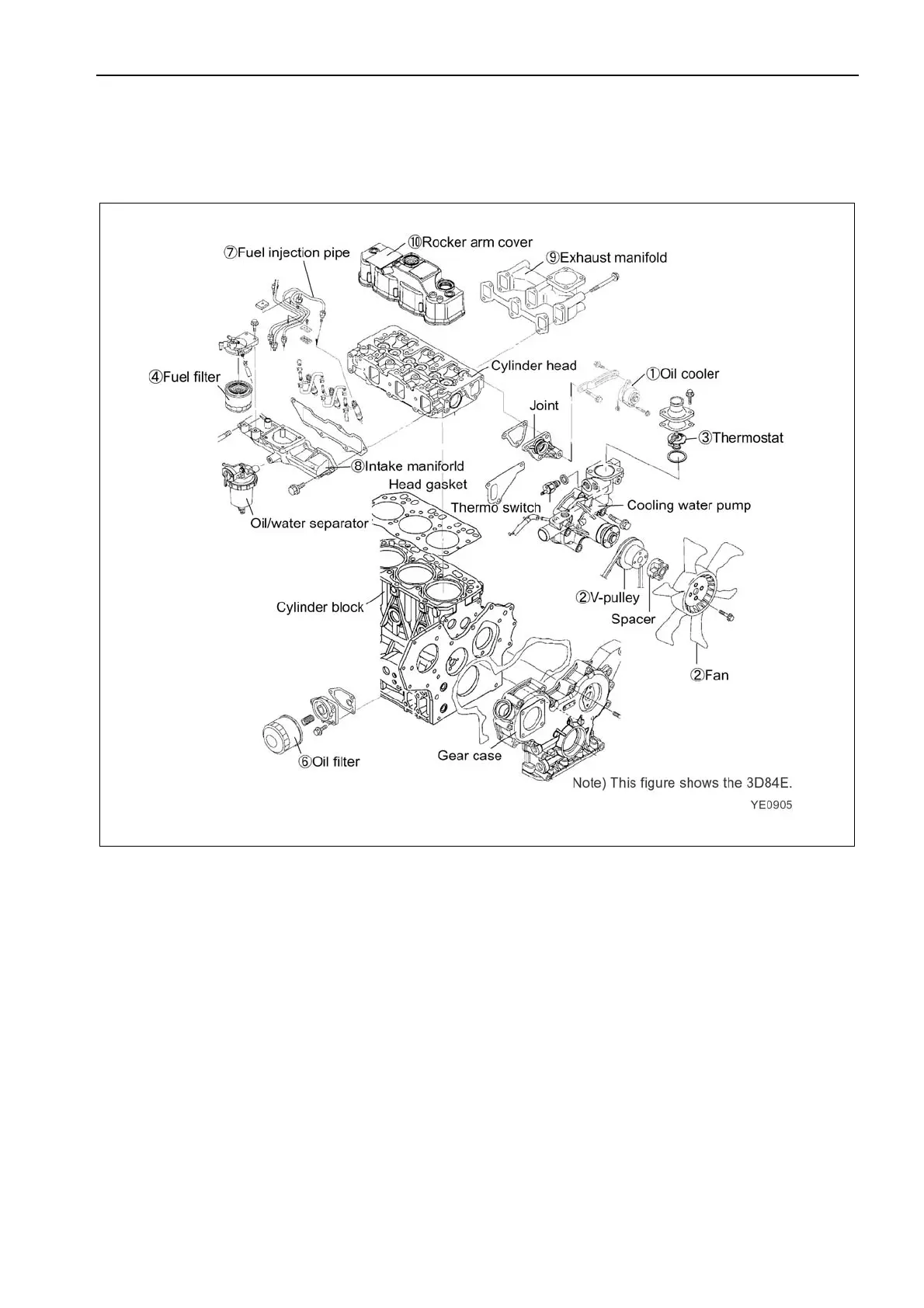 4) Remove the fuel filter and fuel oil piping. (Point 3)