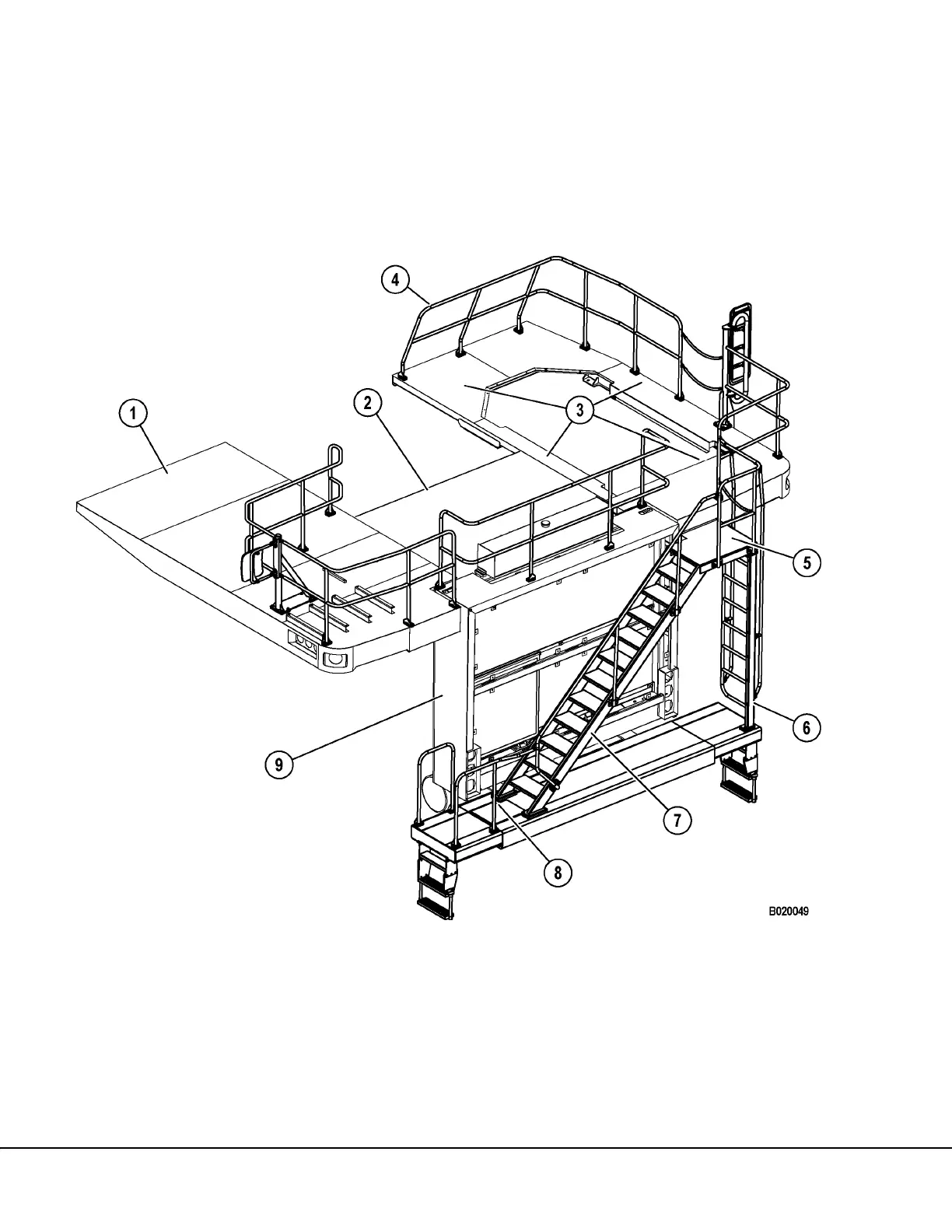 A diagonally mounted ladder (7, Figure 2-1) provides
