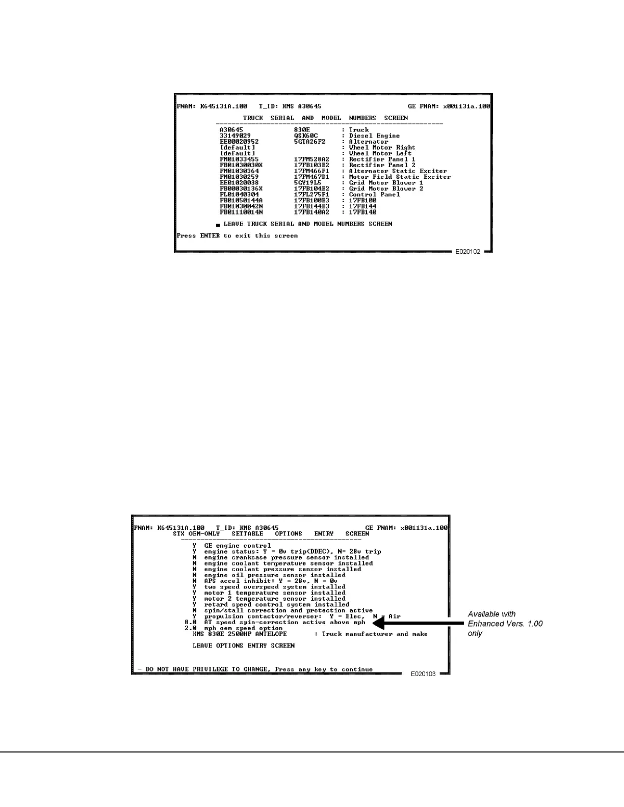 the “leave truck serial numbers screen” selection