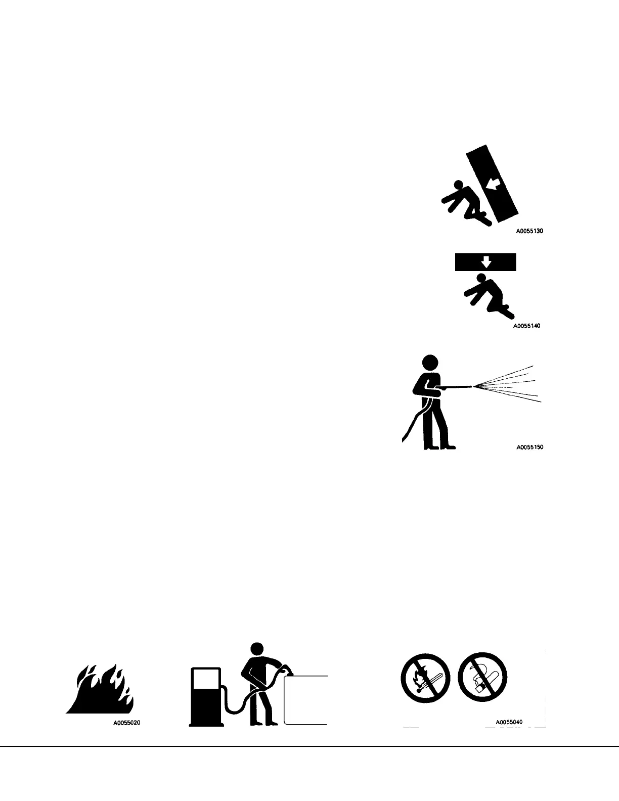 • Spilled fuel and oil may cause slipping. Always clean up spills immediately.