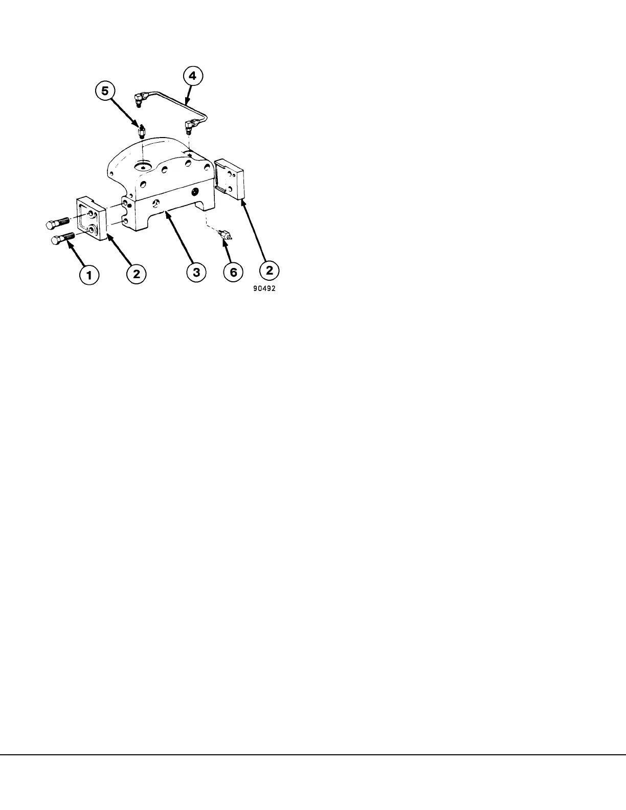 9. Remove two center caliper mount capscrews (4,