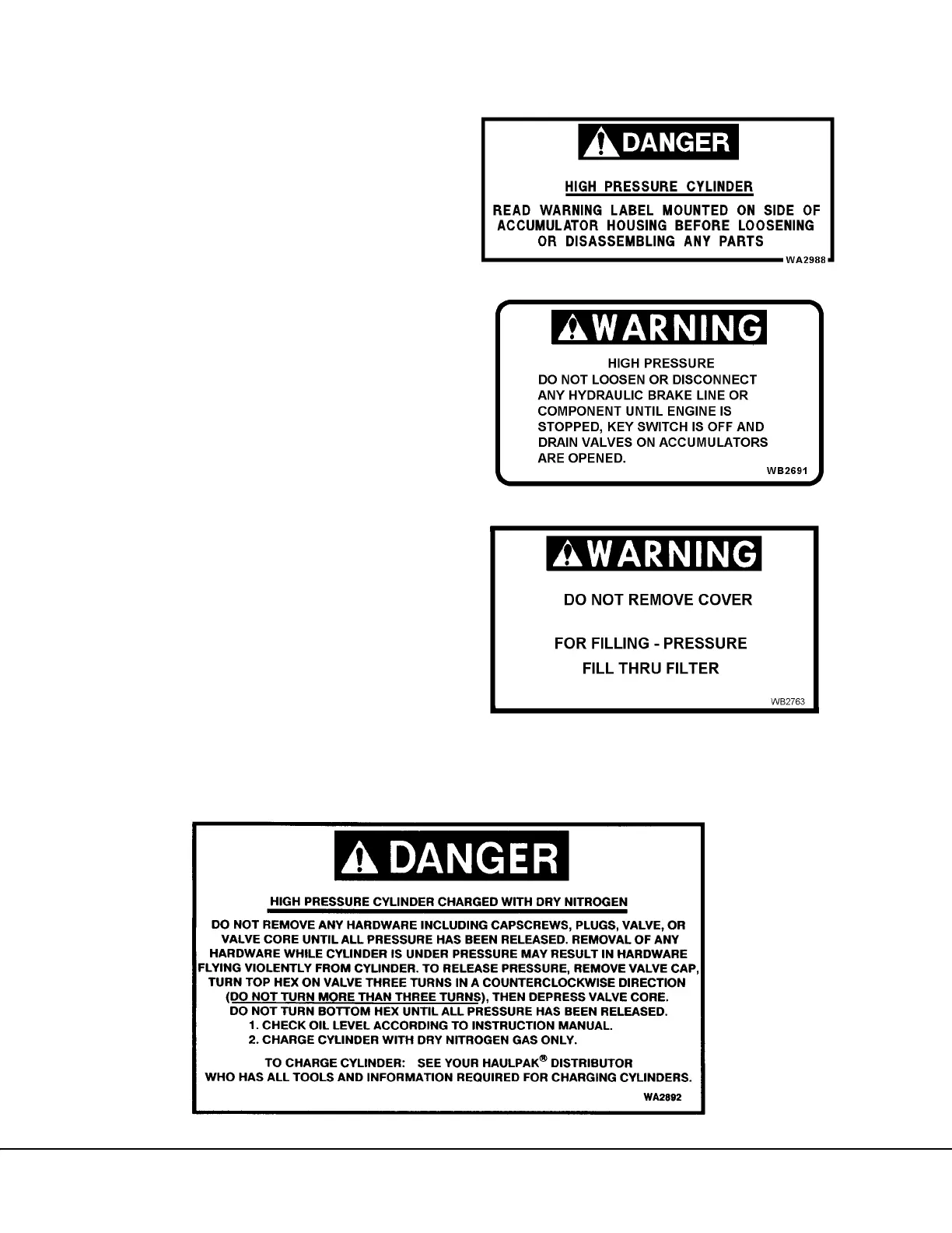 This DANGER plate is attached to all four suspen-