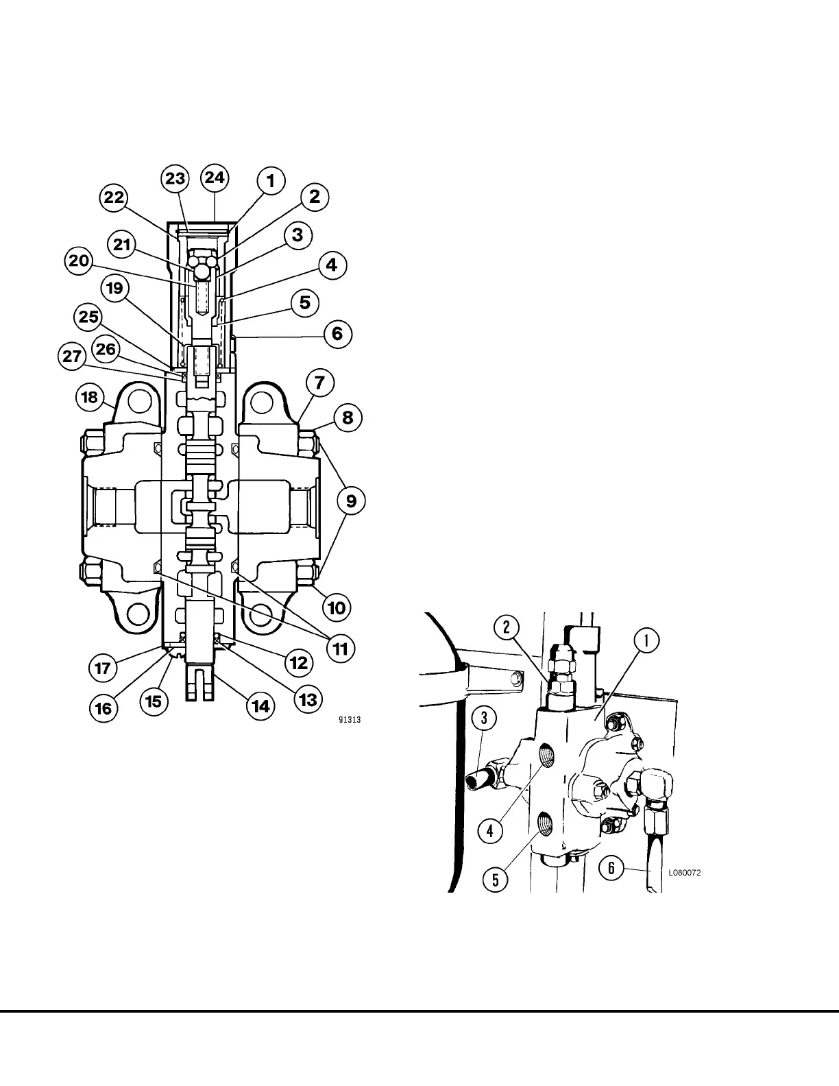 3. Remove snap ring (1), capscrews (6), cap (24),