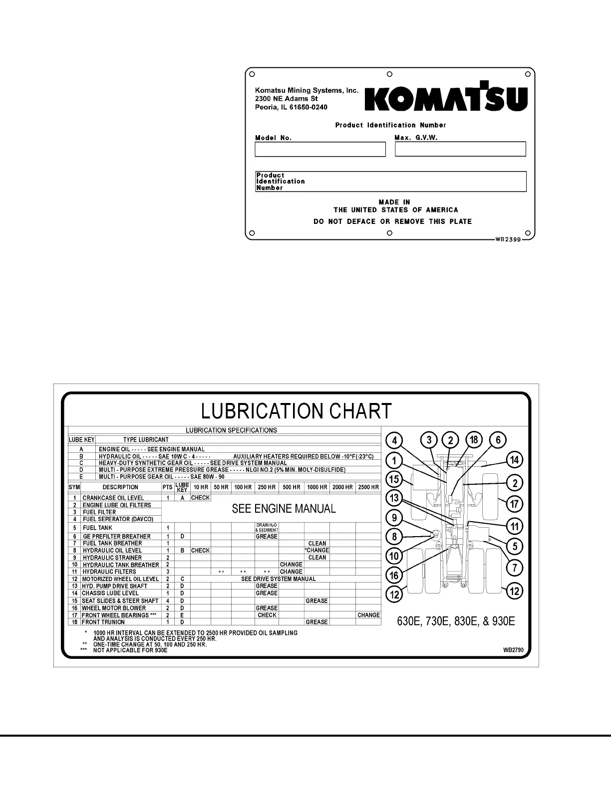 The Lubrication Chart is mounted on the right hand side of the radiator grille structure.