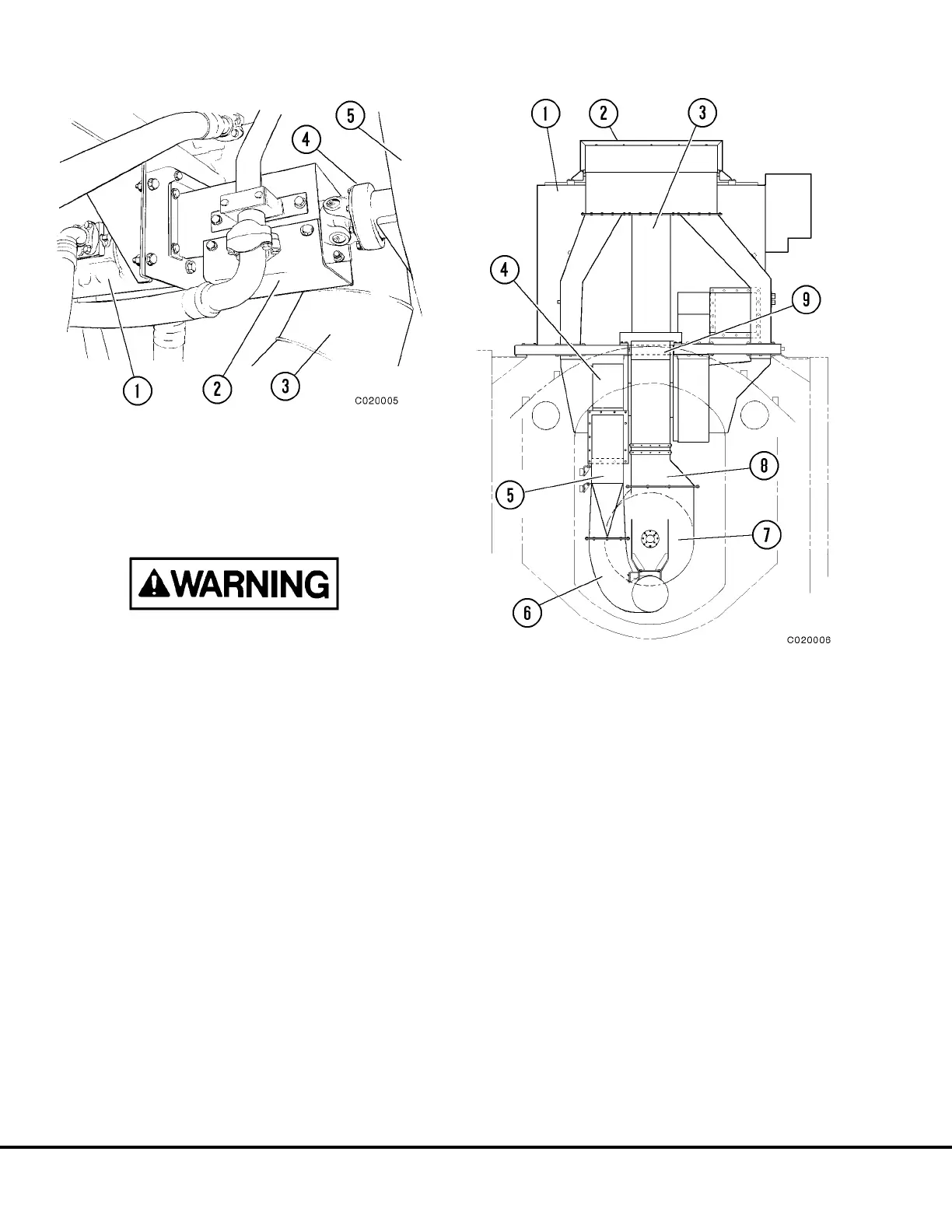 7. Loosen clamps (5) on hump hoses (4) between