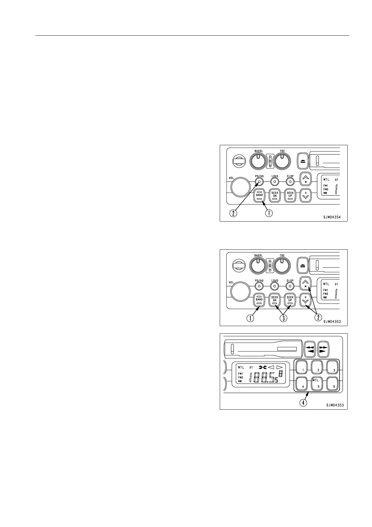 2. Press manual tuning buttons (2) or seek tuning buttons (3).