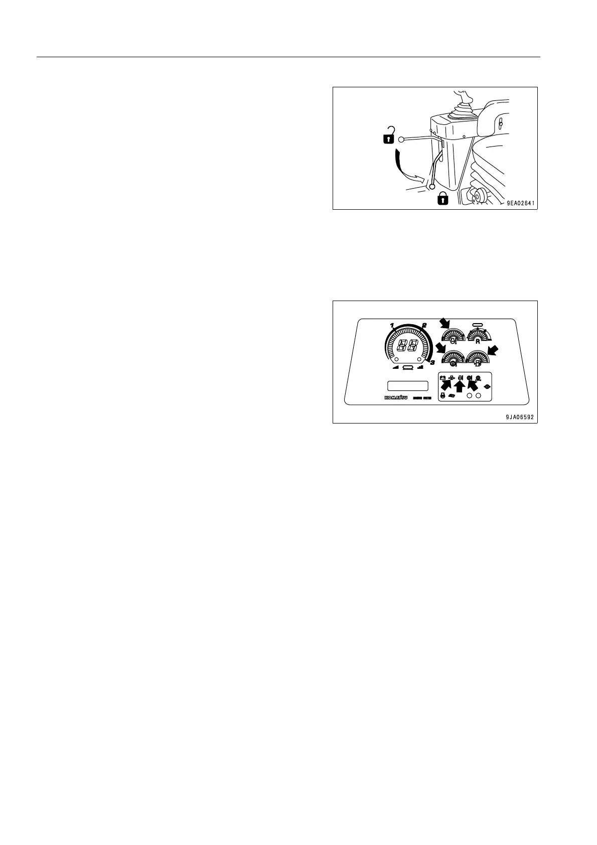 1. Walk around the machine and check the work equipment, machine exterior, and undercarriage, also check for