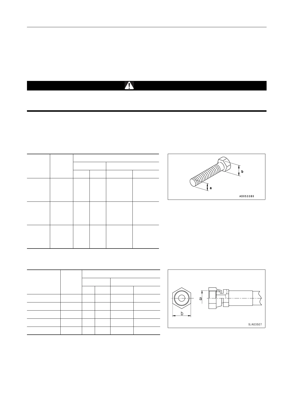 If it is necessary to replace any nut or bolt, always use a Komatsu genuine part of the same size as the part that