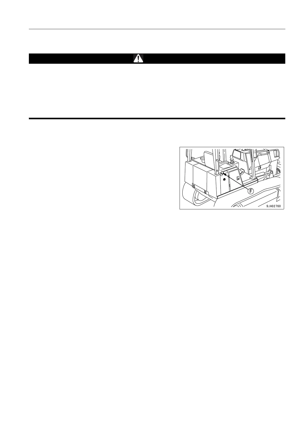 4. Loosen oil filler cap (F) at the top of the hydraulic tank