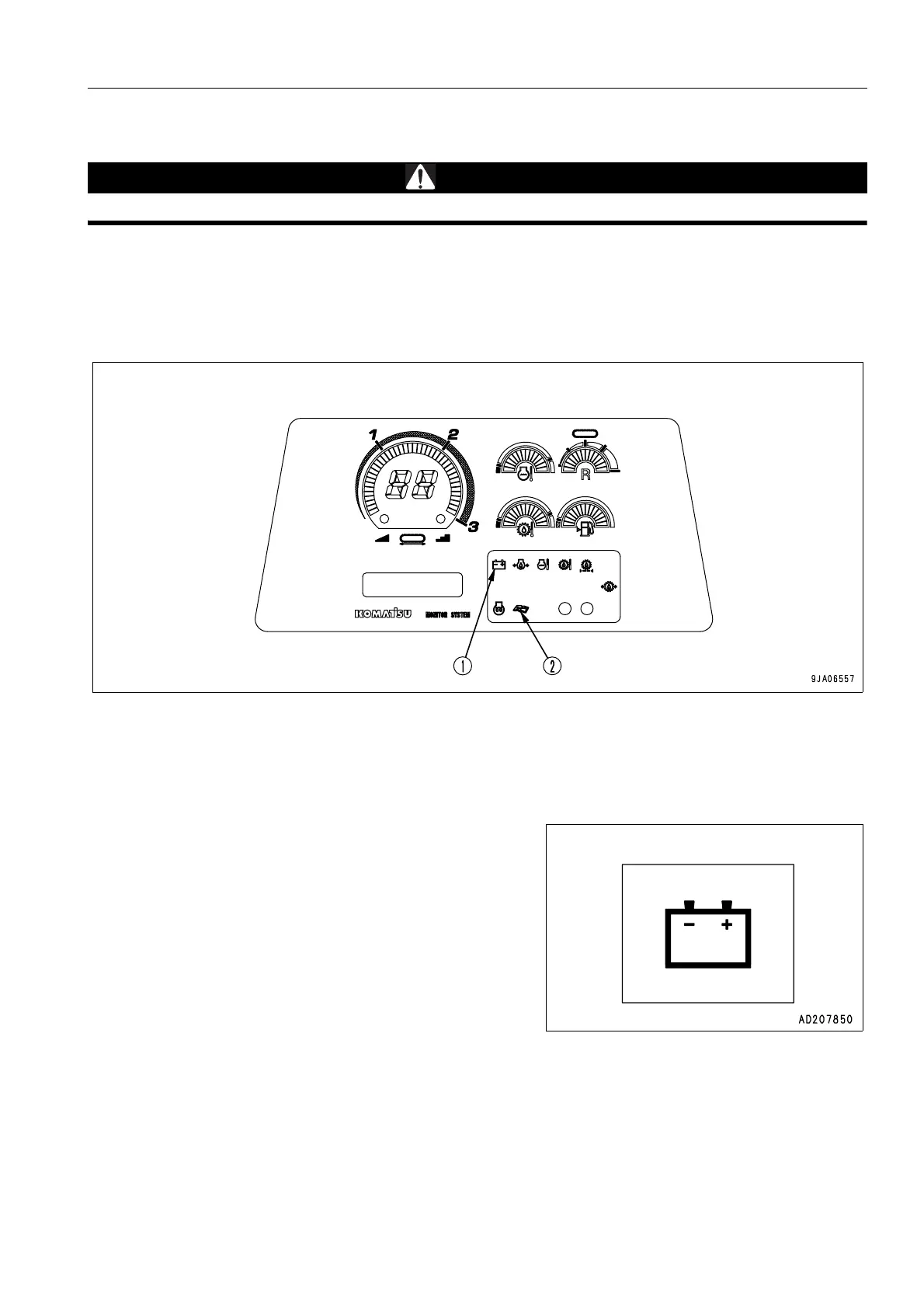 (1) Battery charge circut caution lamp (2) Maintenance caution lamp