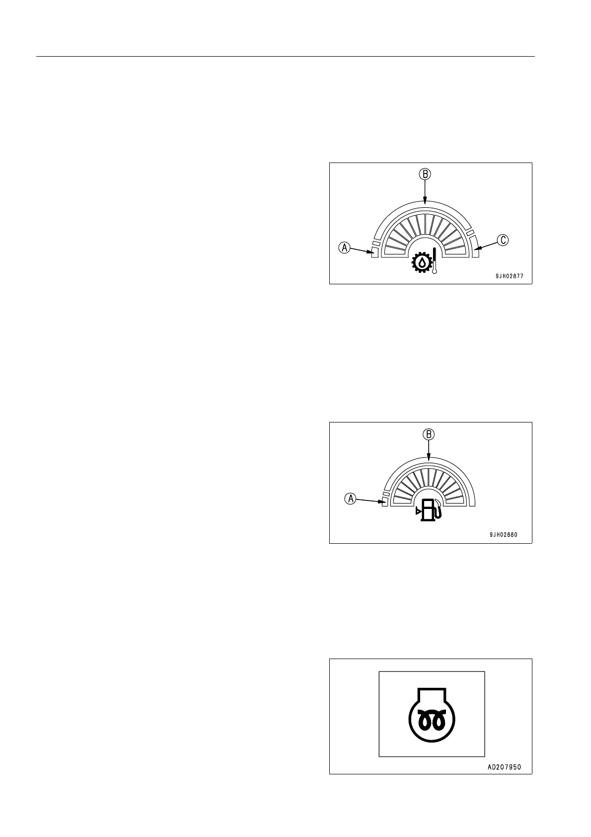 If the HST oil temperature gauge frequently enters red range (C), check for clogging of the oil cooler.