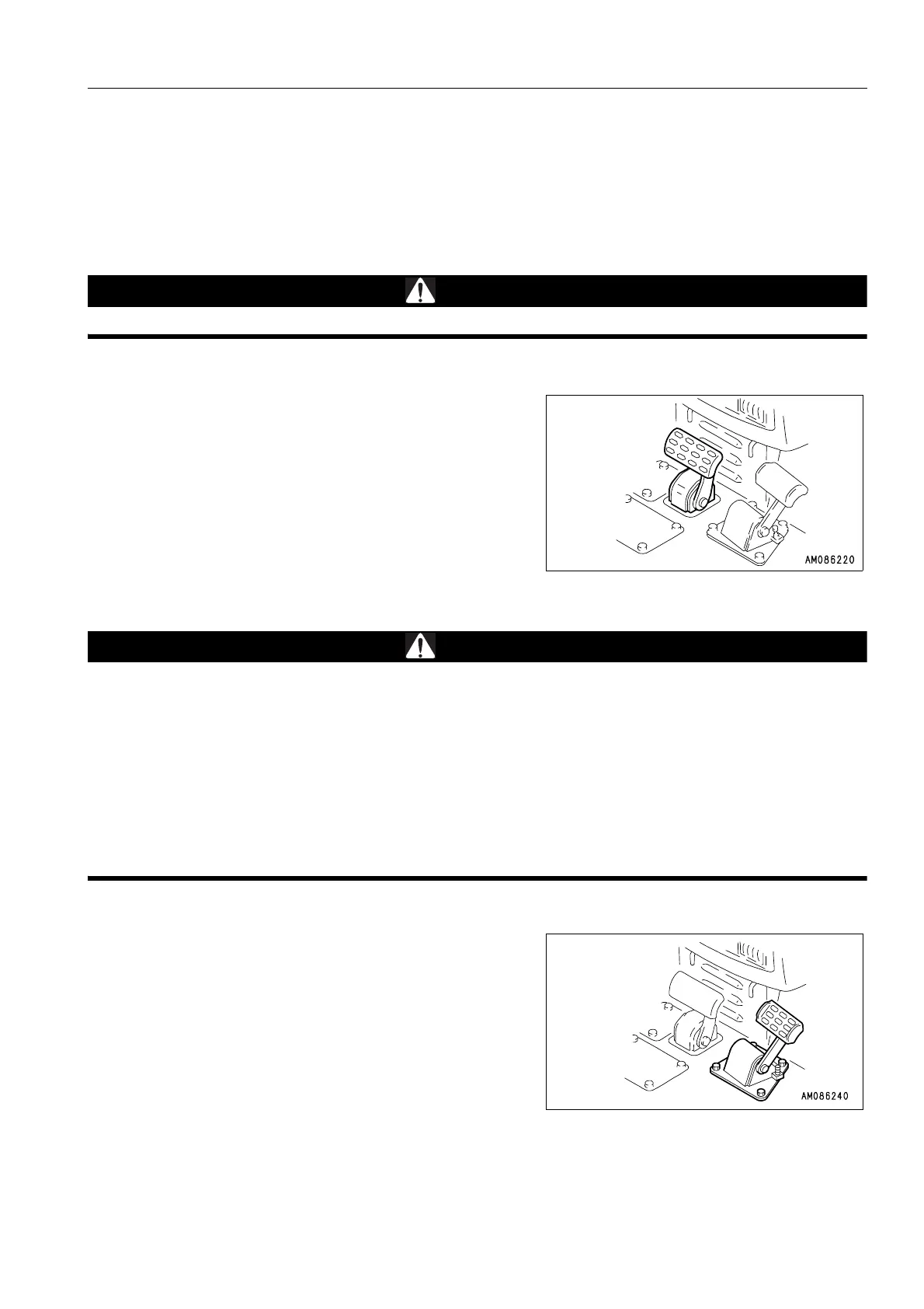 q When traveling on flat ground, the decelerator pedal can be used to stop the machine. However, this