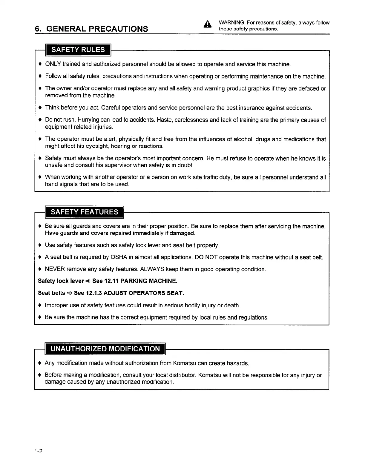+ Before making a modification, consult your local distributor. Komatsu will not be responsible for any injury or