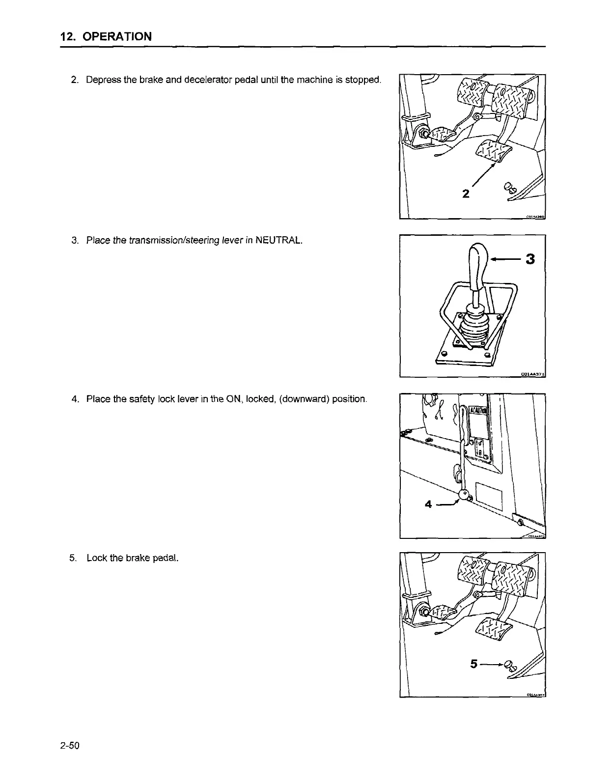 3. Place the transmission/steering lever in NEUTRAL.