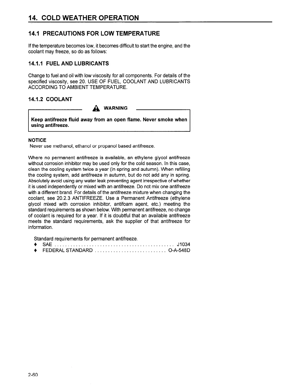 14.1 PRECAUTIONS FOR LOW TEMPERATURE