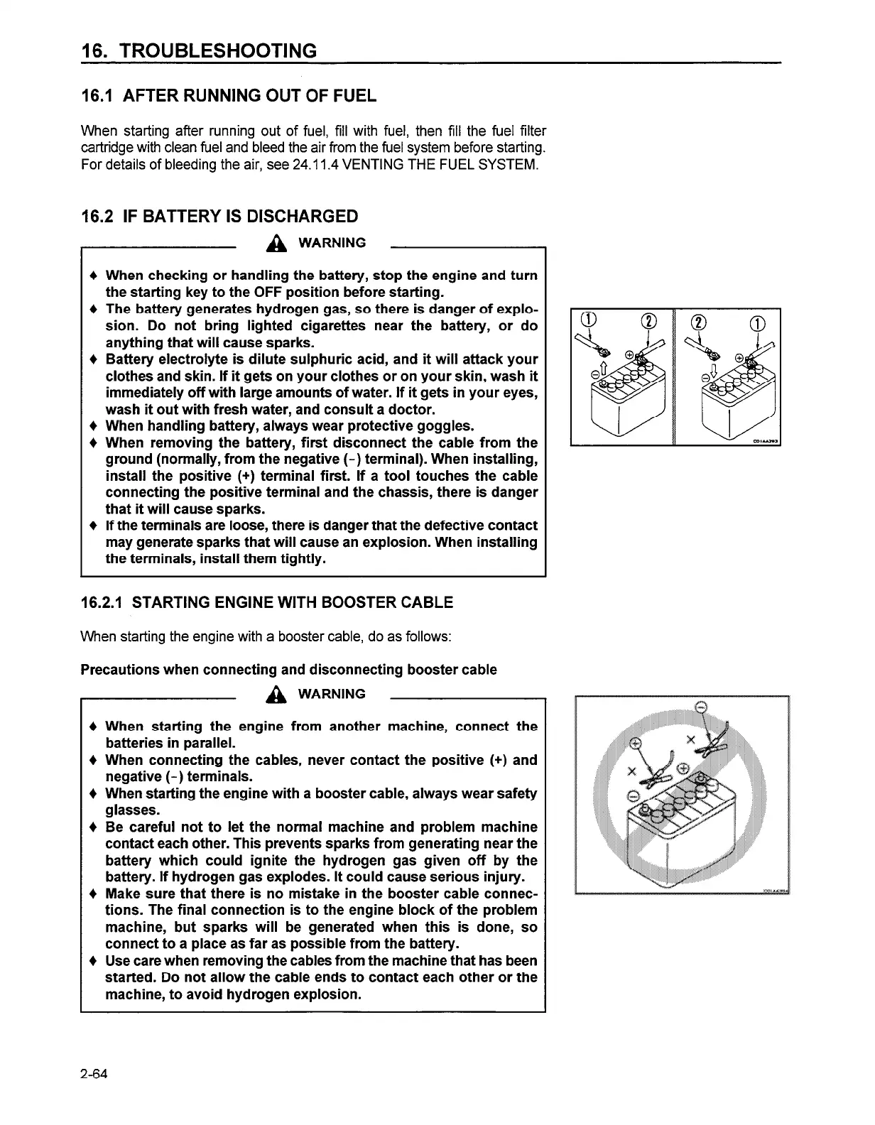 16.2.1 STARTING ENGINE WITH BOOSTER CABLE