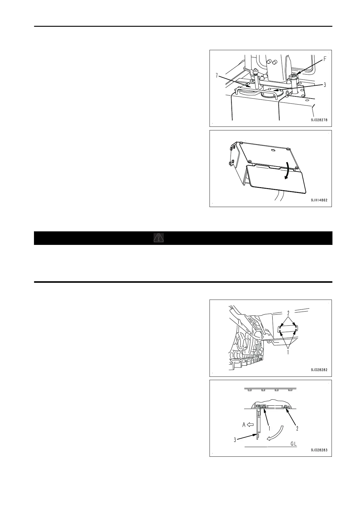 bolts (2), perform the work from the rear of the cover so that you can easily get out of the way.