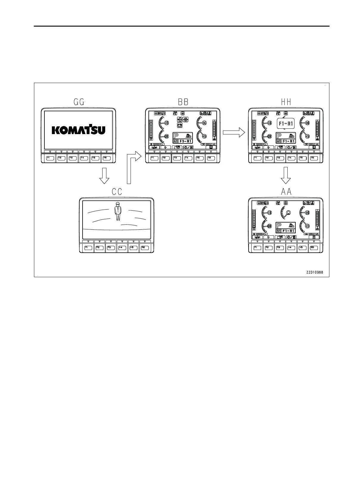 • If the camera image CC is not displayed, there can be a failure. In this case, ask your Komatsu distributor