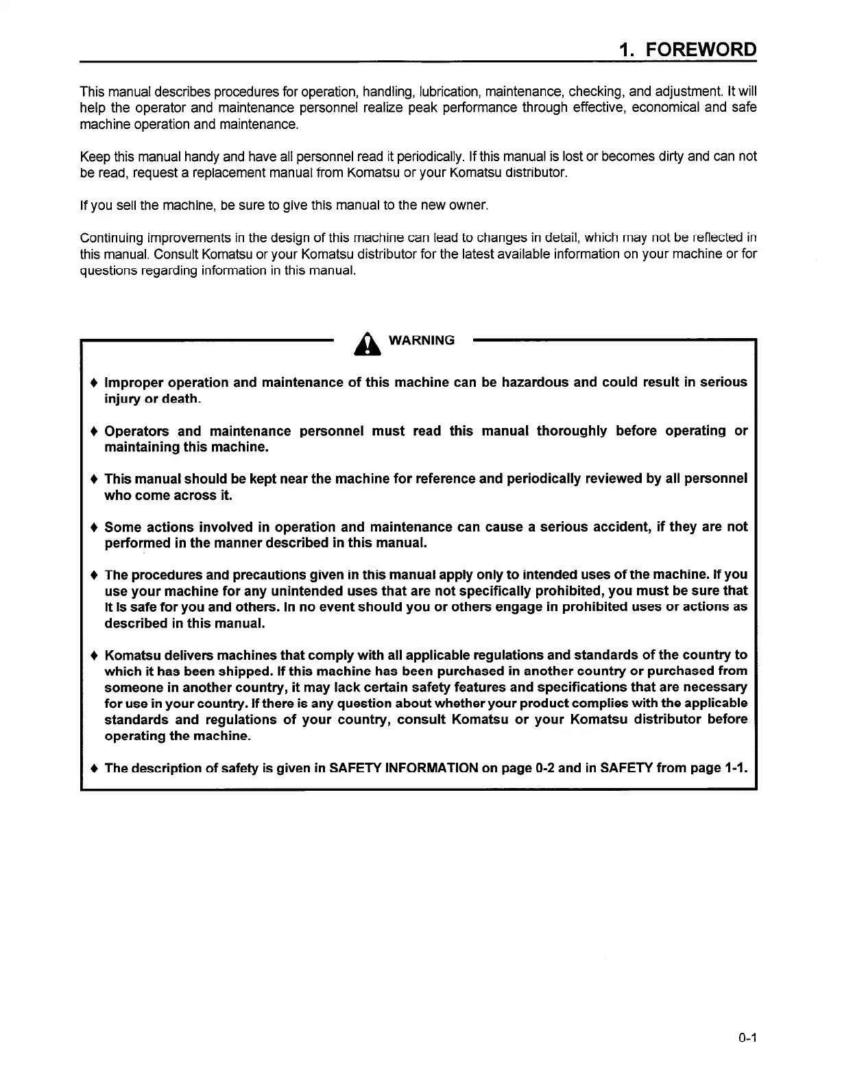 be read, request a replacement manual from Komatsu or your Komatsu distributor.