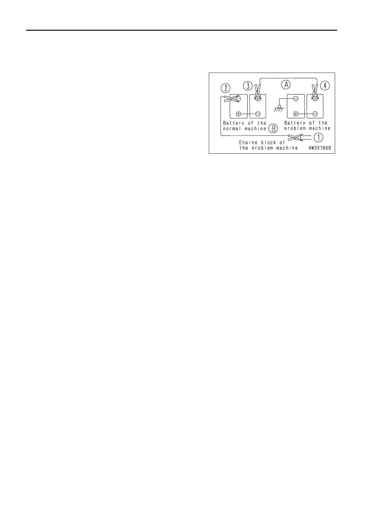 3. Remove one clip of booster cable (A) from the positive (+)