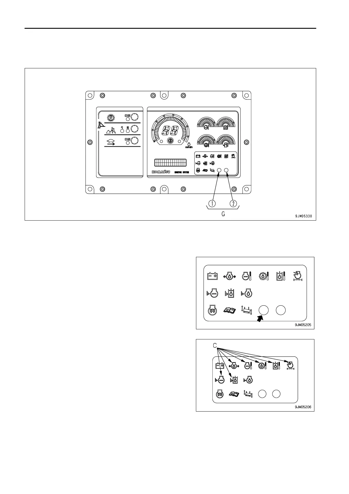 G (1) Warning lamp G (2) Filter, oil change interval lamp