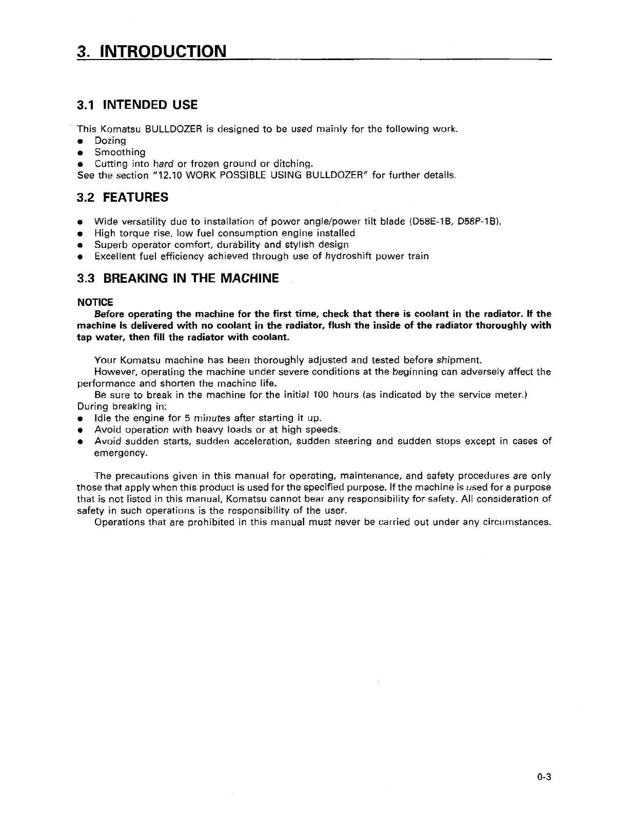 Your Komatsu machine has been thoroughly adjusted and tested before shipment.