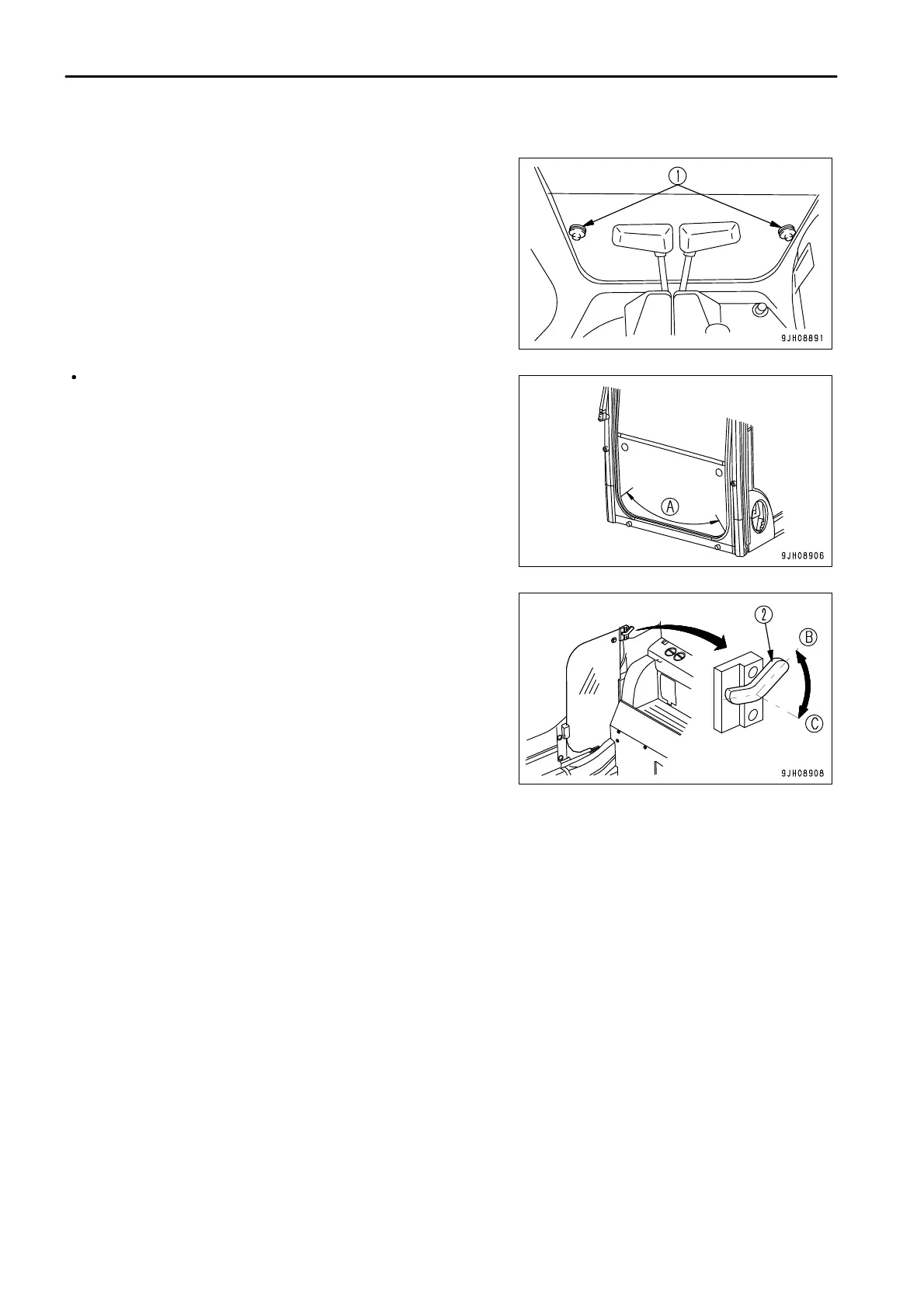 the operator's cab, and set lever (2) to lock position (B) to hold