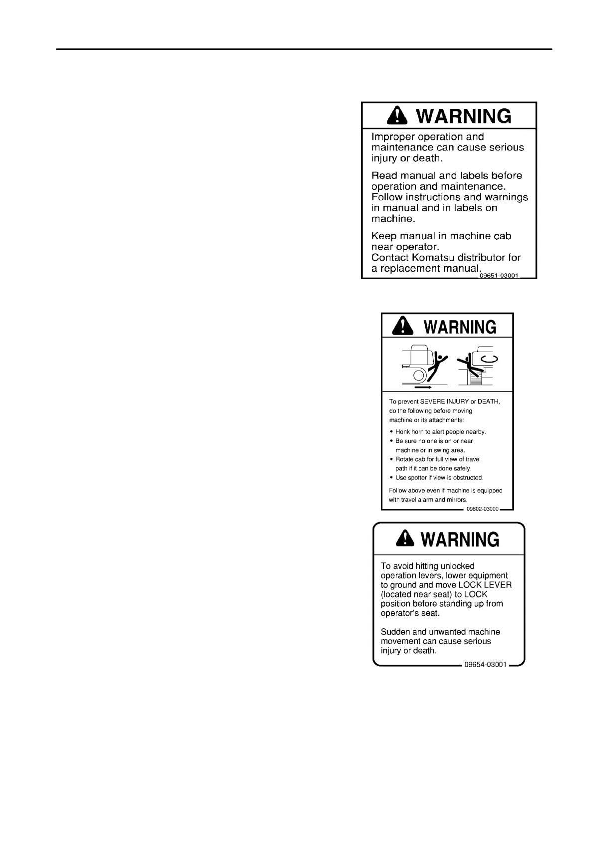 (3) Caution for leaving operator's seat (09654-03001)
