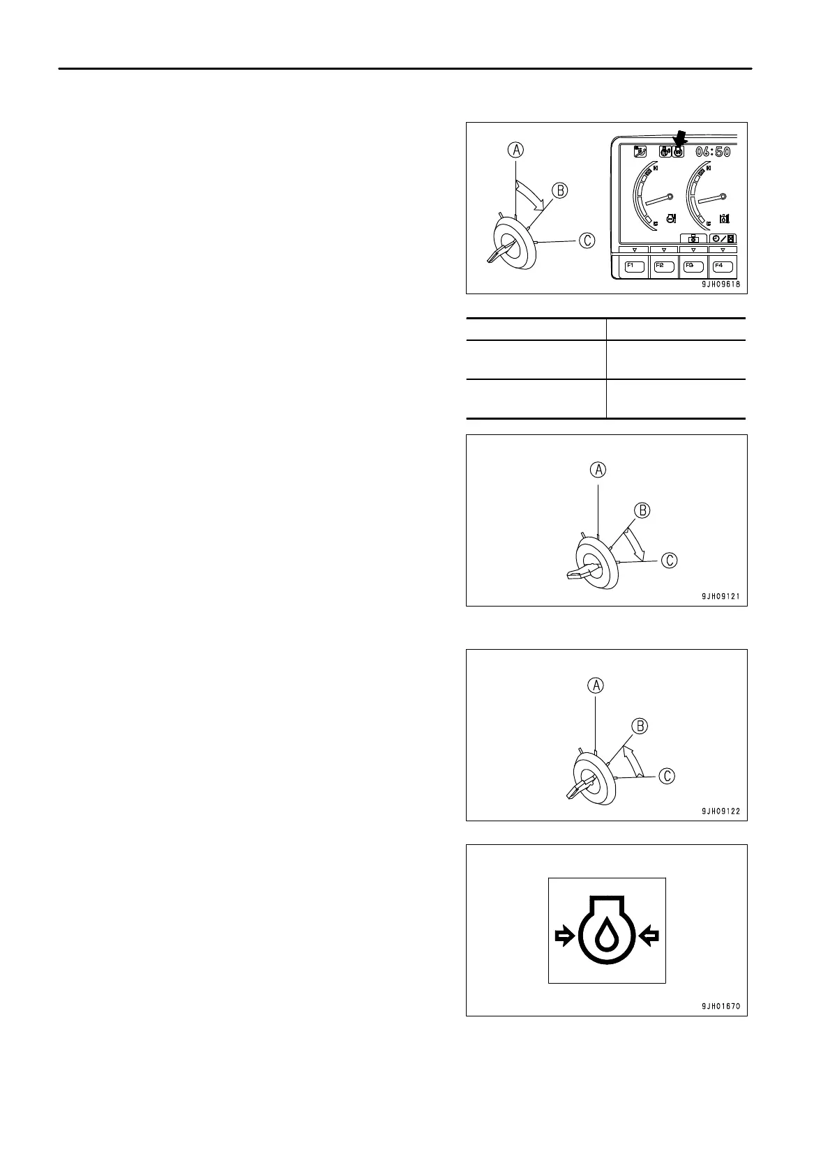 3. Turn the key in starting switch (3) to ON position (B).