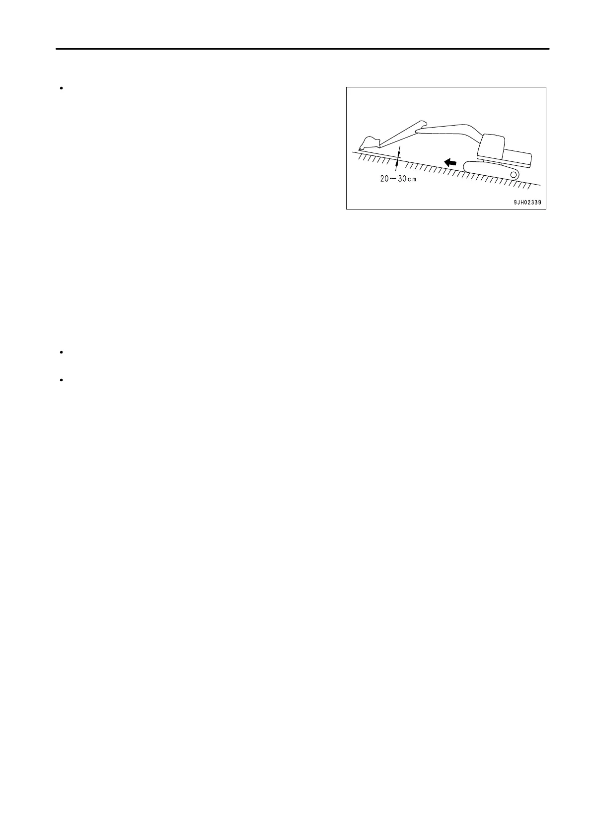 If the engine stops when traveling uphill, move the travel levers to the neutral position, lower the bucket to the