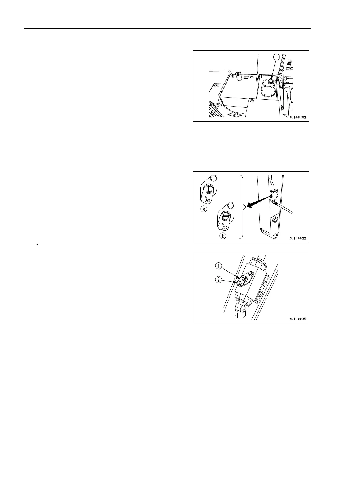 7. Loosen slowly oil filler cap (F) on top of the hydraulic tank to