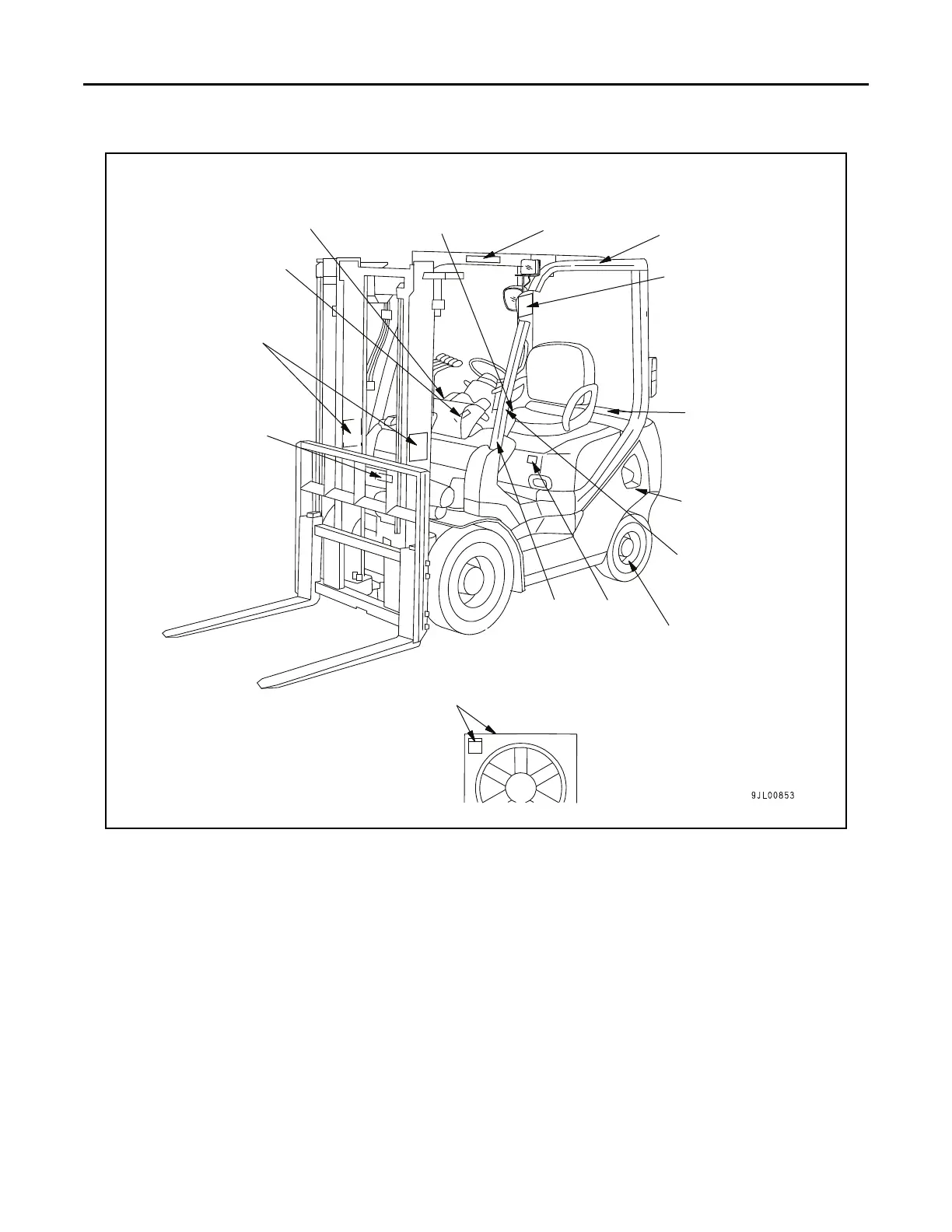 Komatsu FG50AT2-8 - Safety Labels and Placement