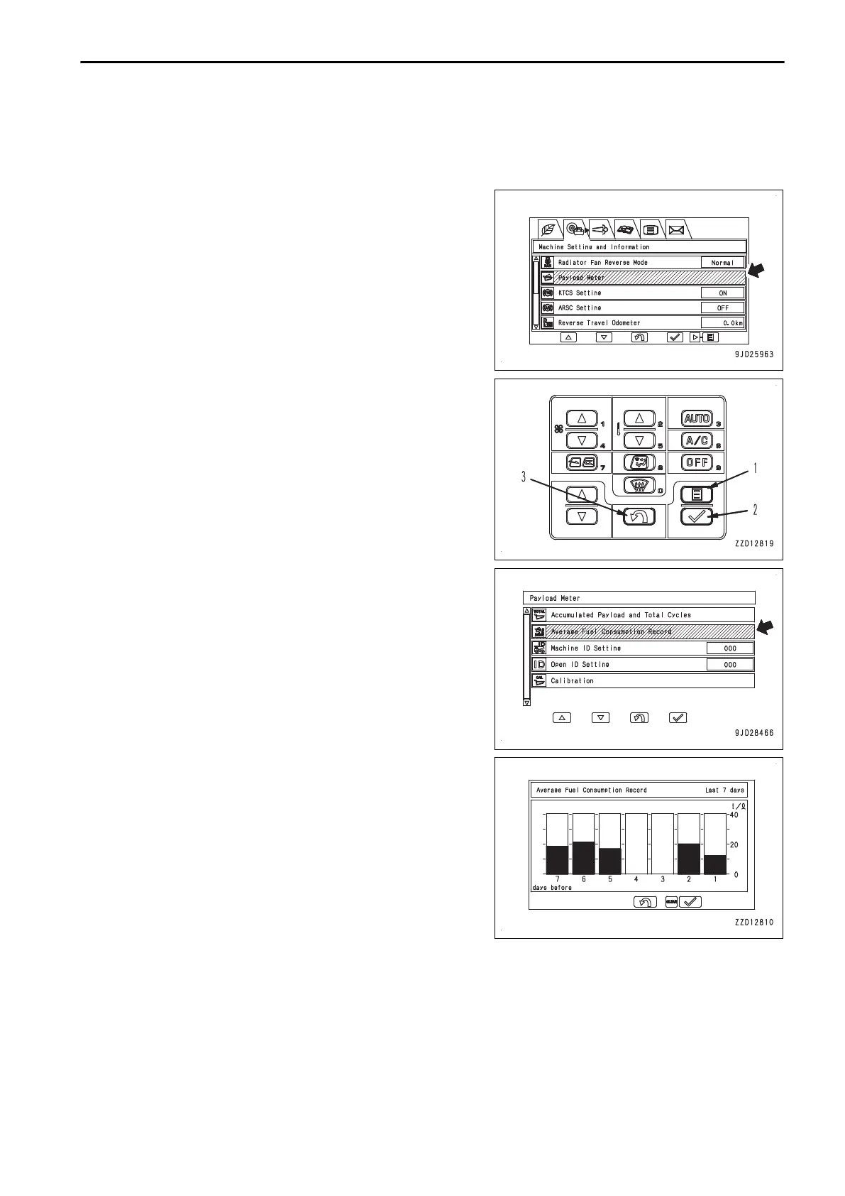 Press the menu switch (1) to display “Machine Setting and